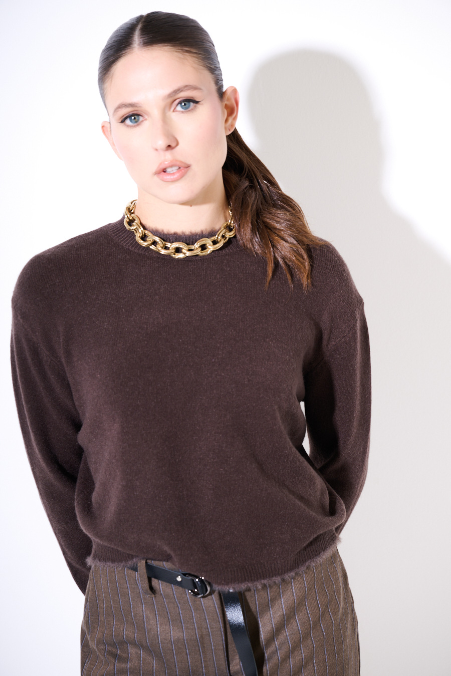 MAGLIA PARICOLLO INSERTI PELLICCIA MORO