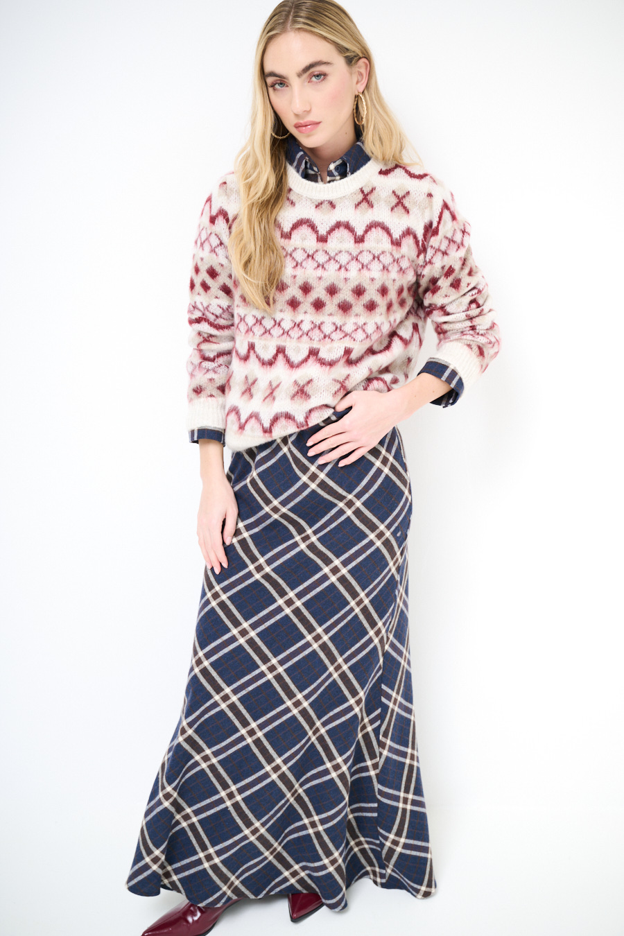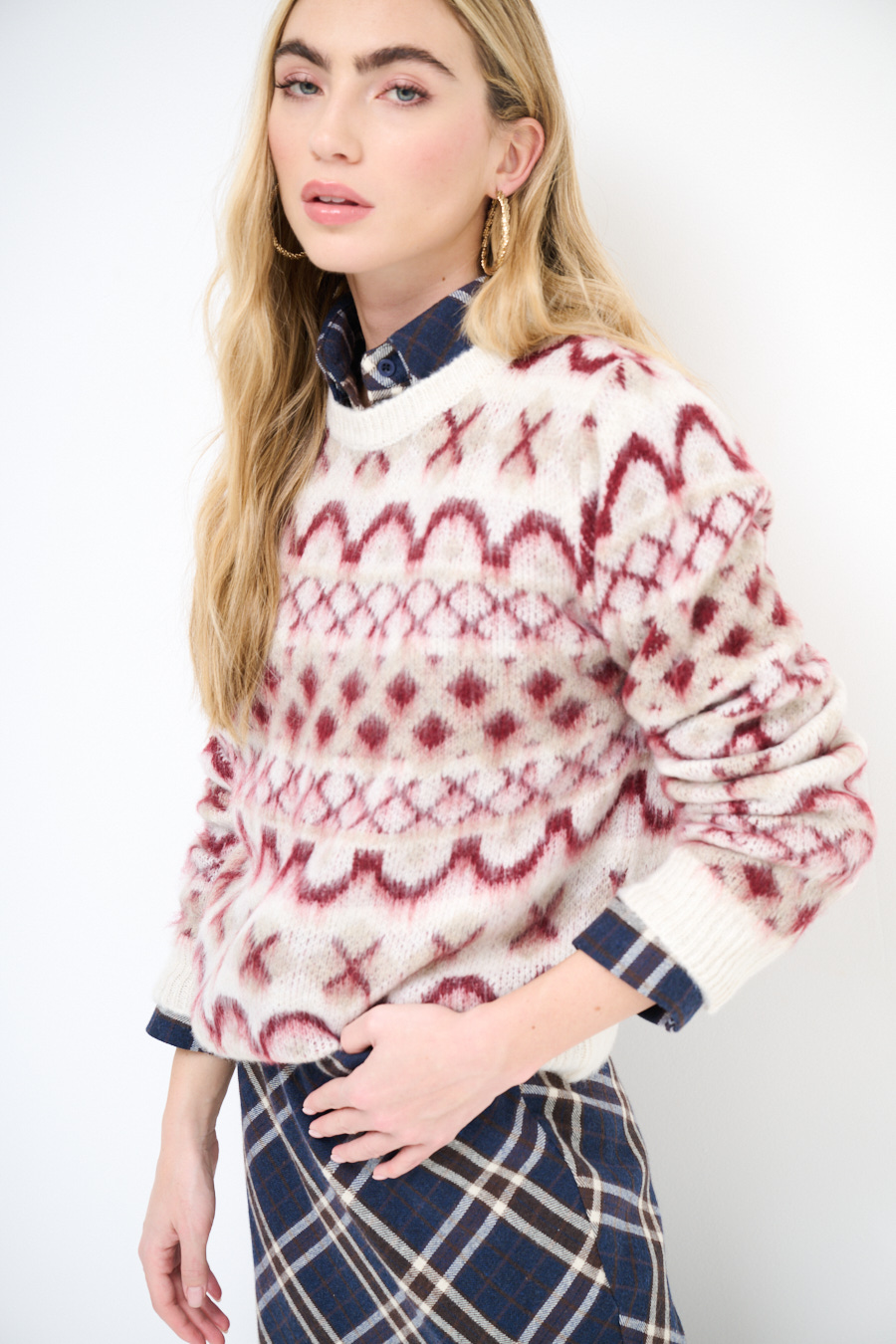 MAGLIA PARICOLLO JACQUARD ECRU/VINO