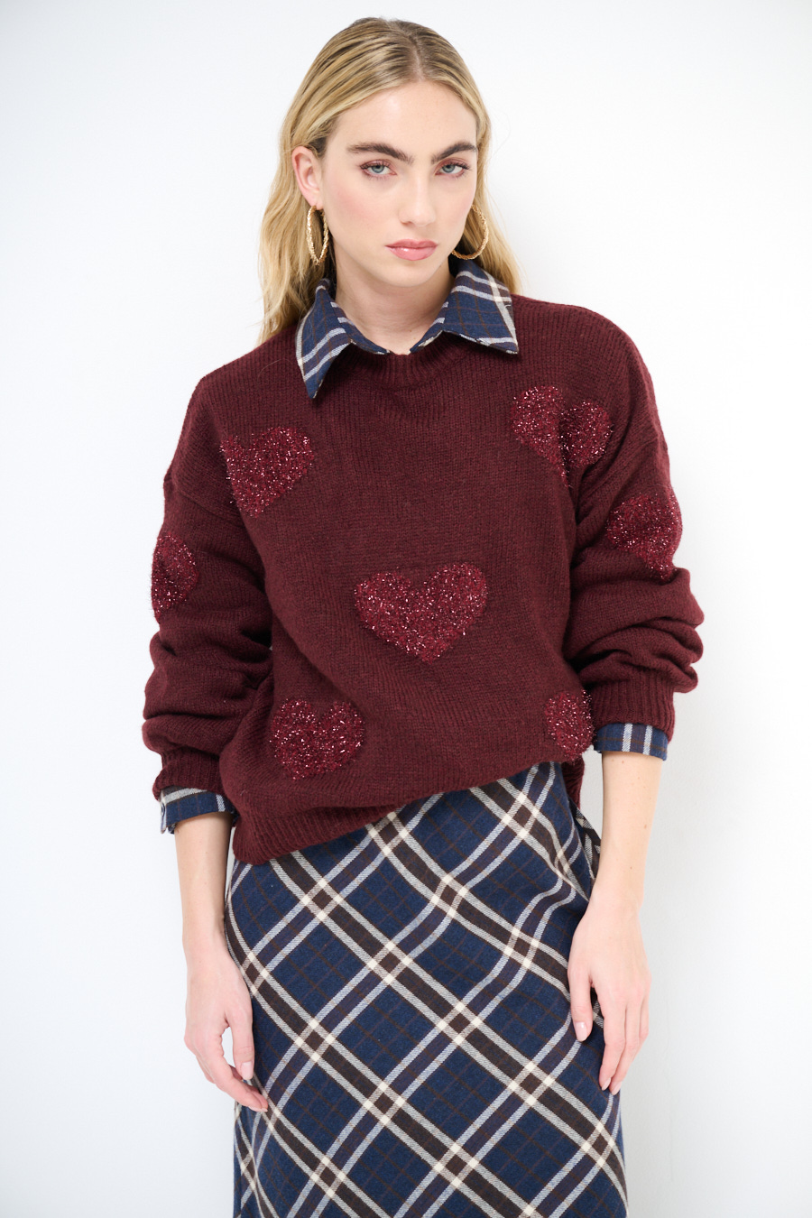 MAGLIA PARICOLLO LUREX CON CUORI VINO