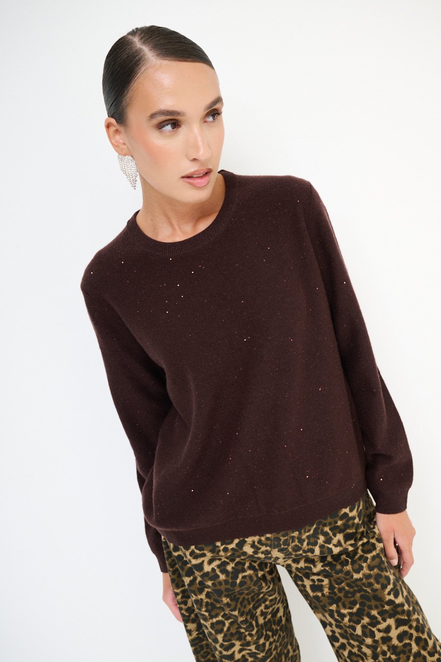 MAGLIA PARICOLLO MICROPAILLETTES LANA CACHEMIRE COFFEE