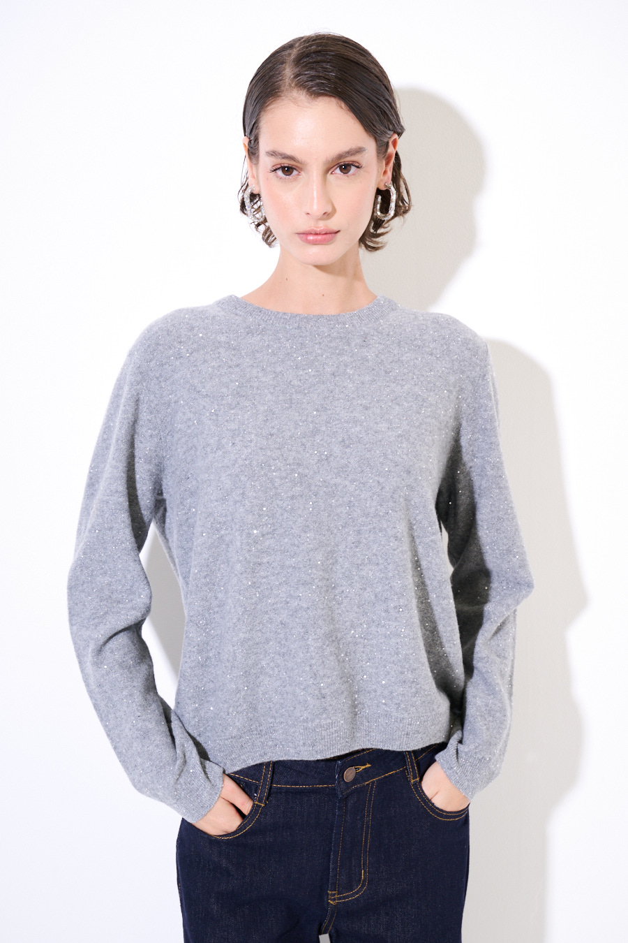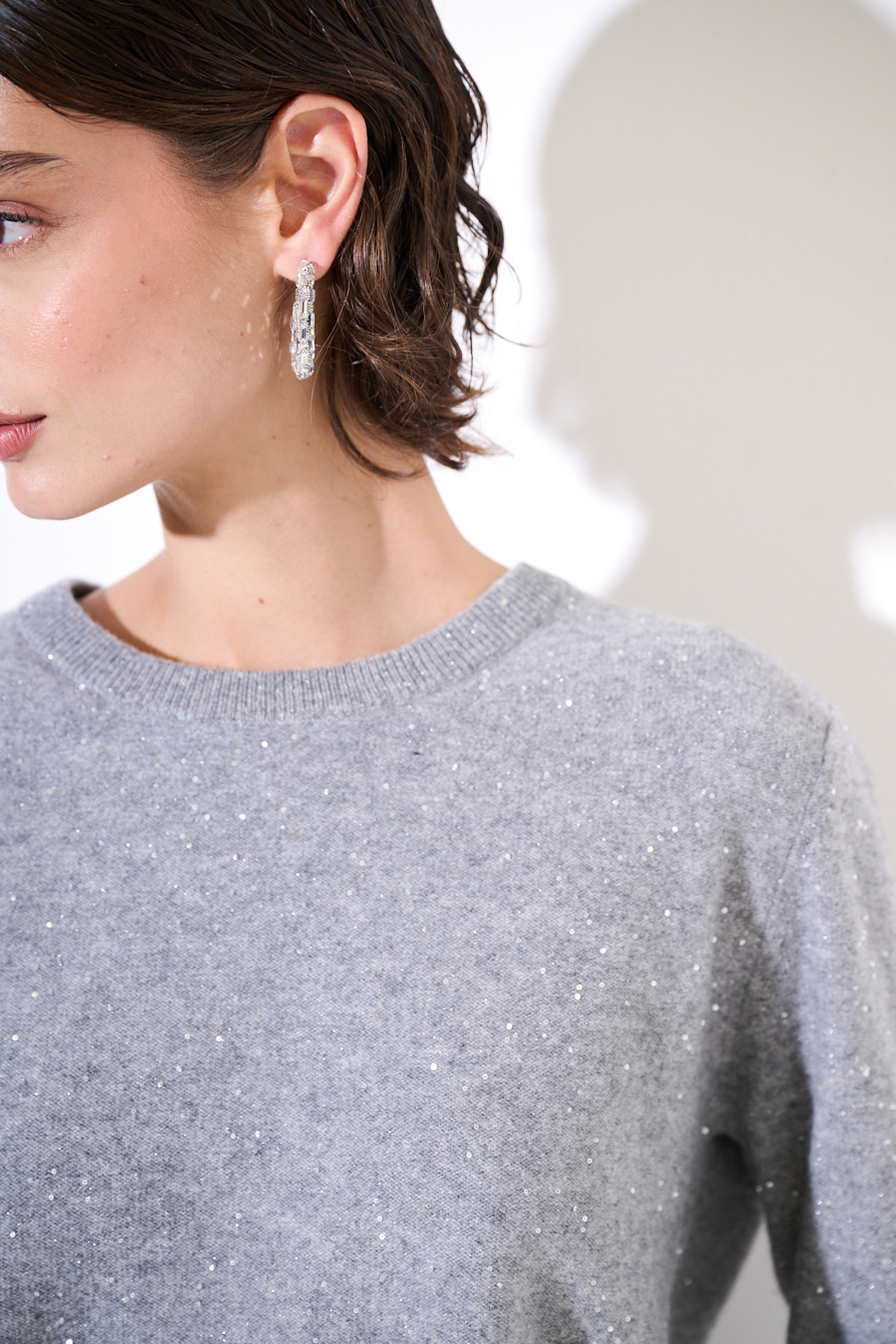 MAGLIA PARICOLLO MICROPAILLETTES LANA CACHEMIRE GRIGIO MEDIO