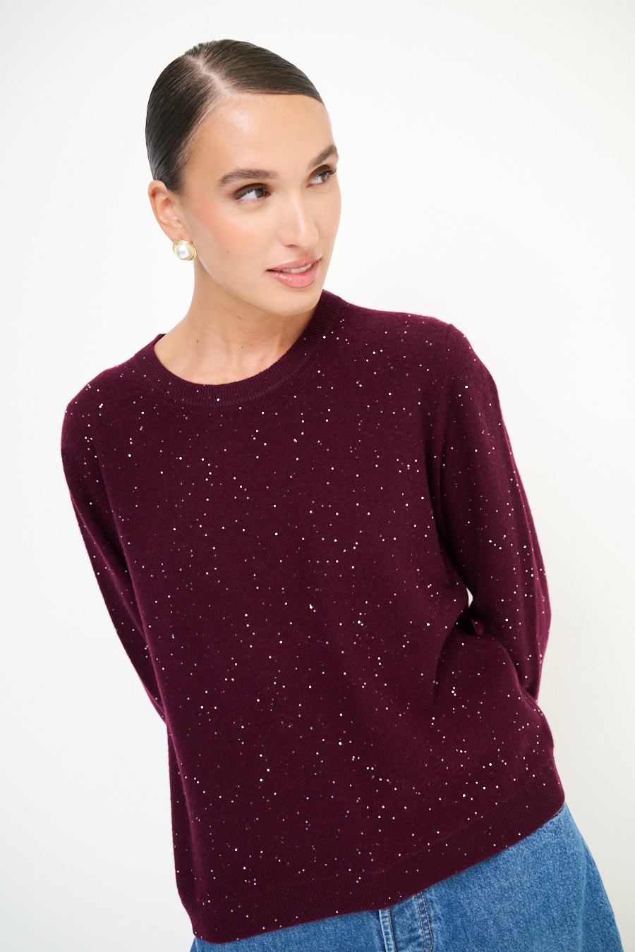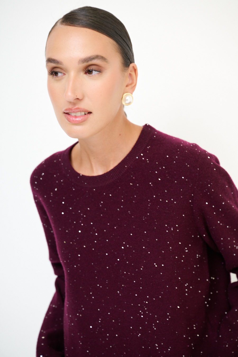 MAGLIA PARICOLLO MICROPAILLETTES LANA CACHEMIRE VINO