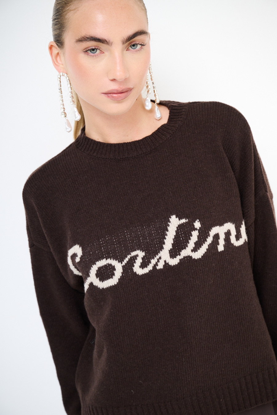 MAGLIA PARICOLLO OVER SCRITTA INTARSIO CORTINA MORO