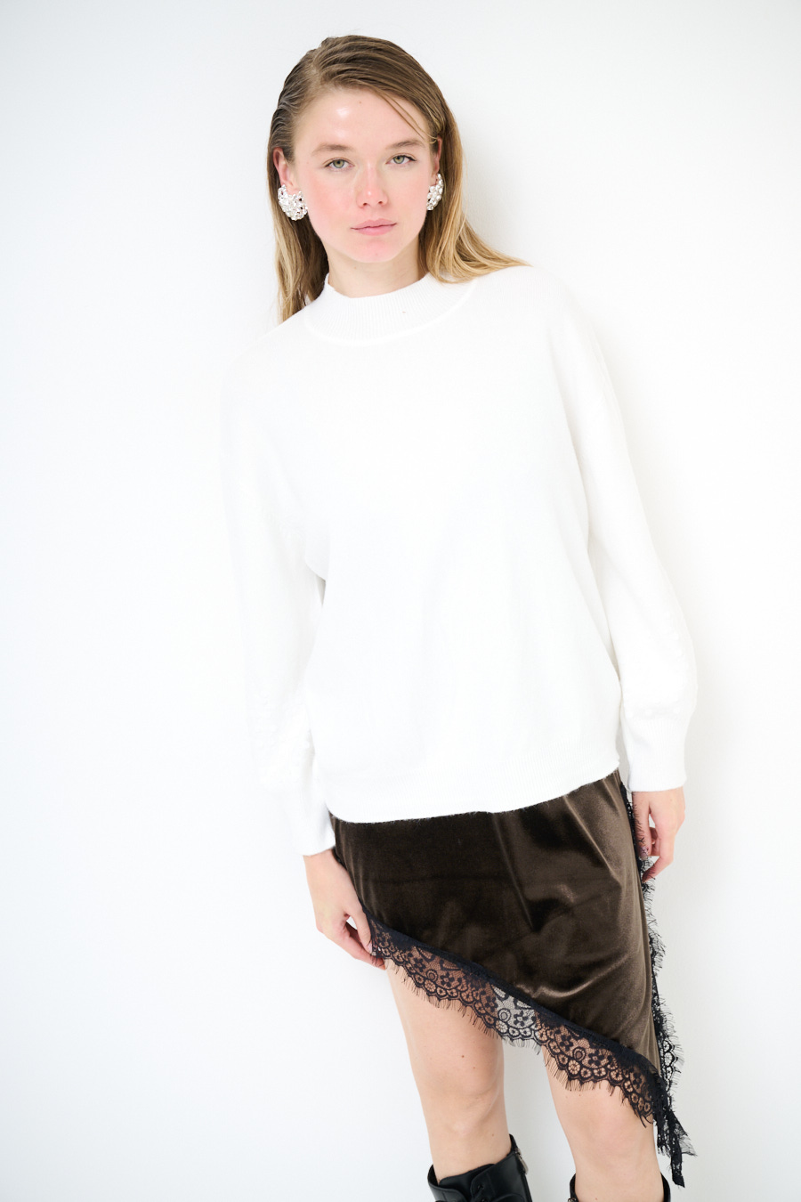 Maglia paricollo ampia con applicazione di paillettes sulla manica.