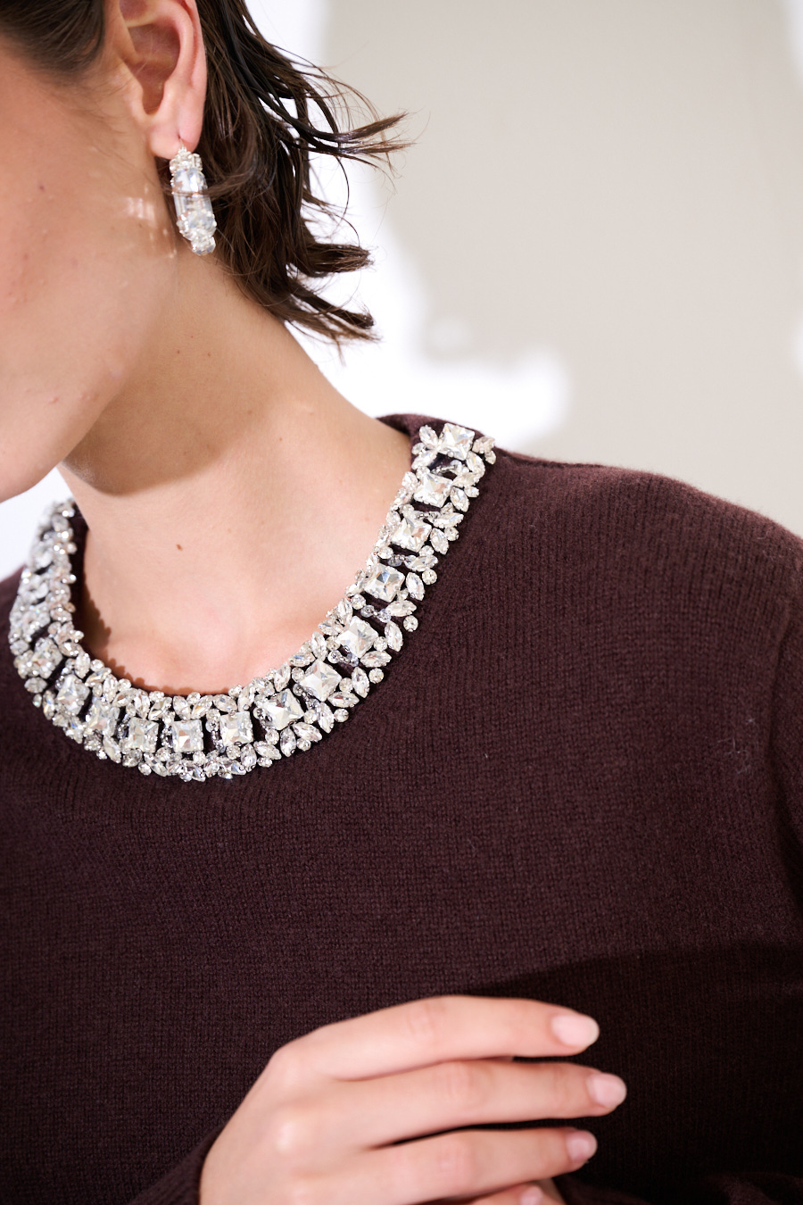 Maglia paricollo con strass sul colletto in misto cashmere.