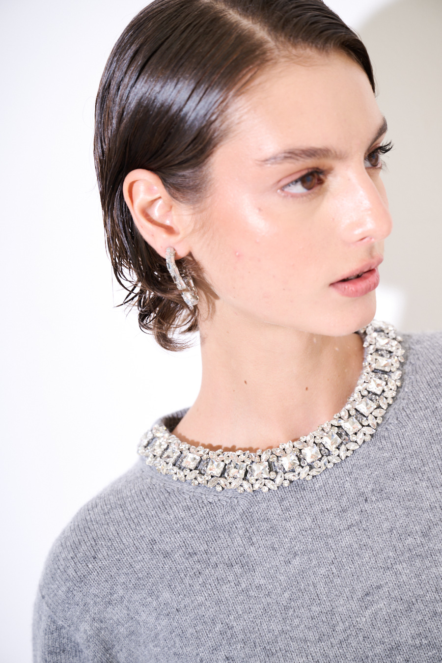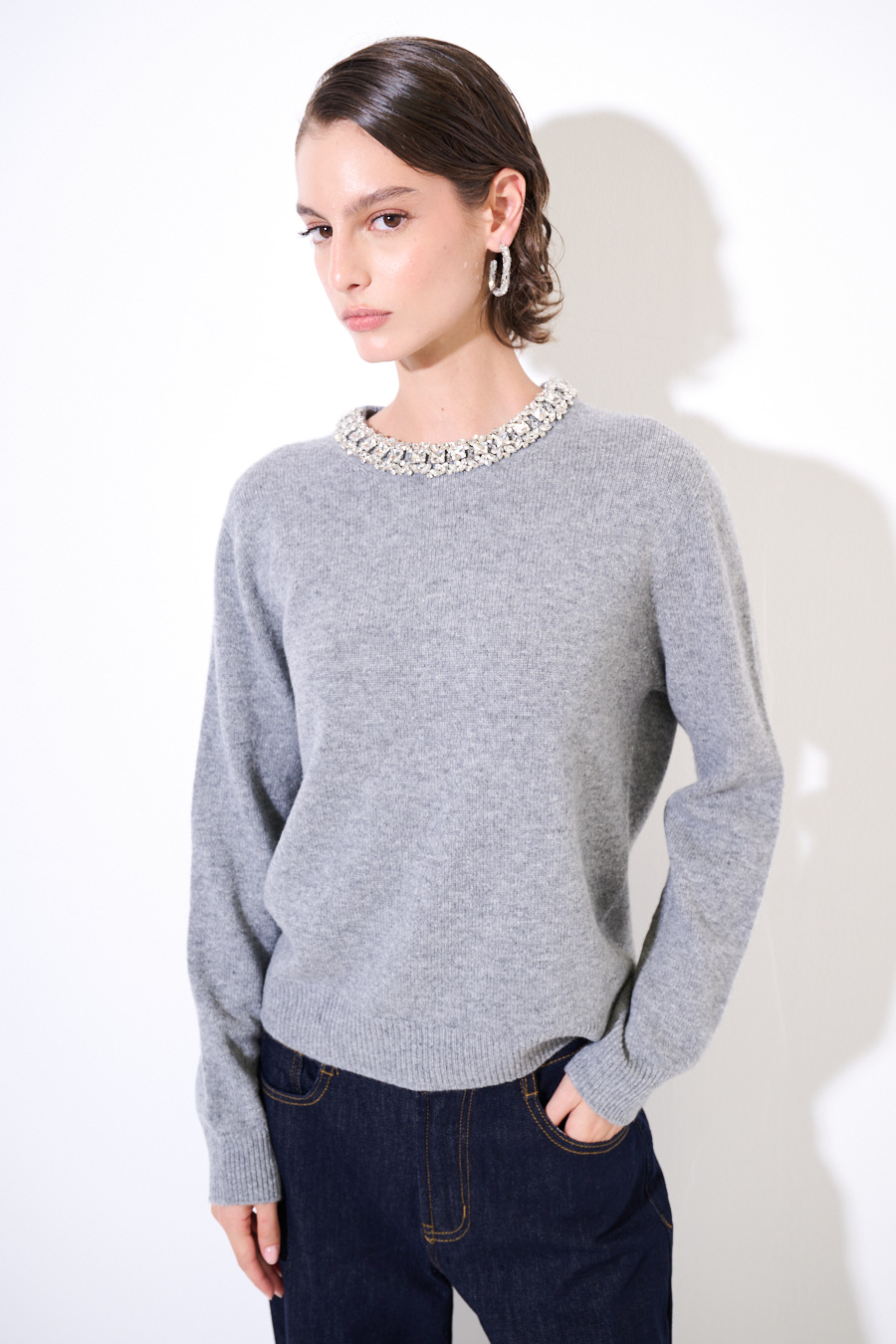 MAGLIA PARICOLLO STRASS LANA CACHEMIRE GRIGIO MEDIO
