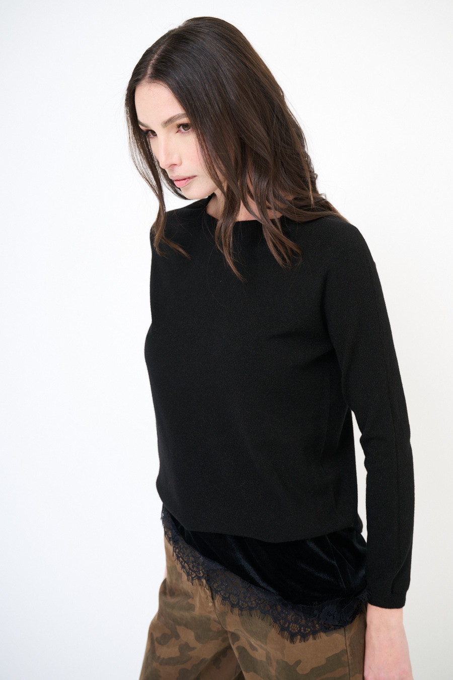 MAGLIA PARICOLLO SVASATA VISCOSA INTEGRALE NERO