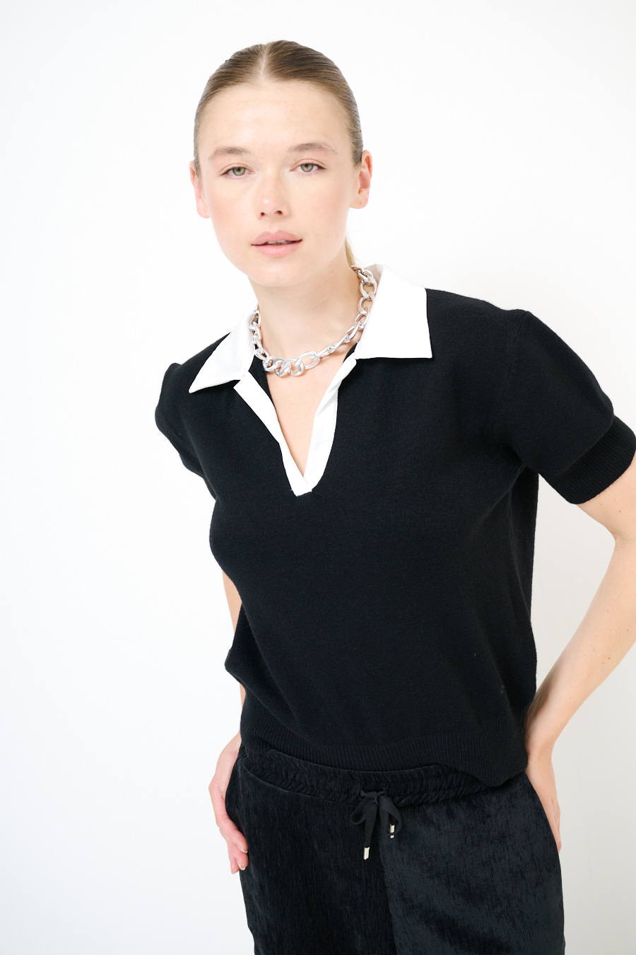 MAGLIA POLO MEZZA MANICA CON COLLETTO TESSUTO NERO