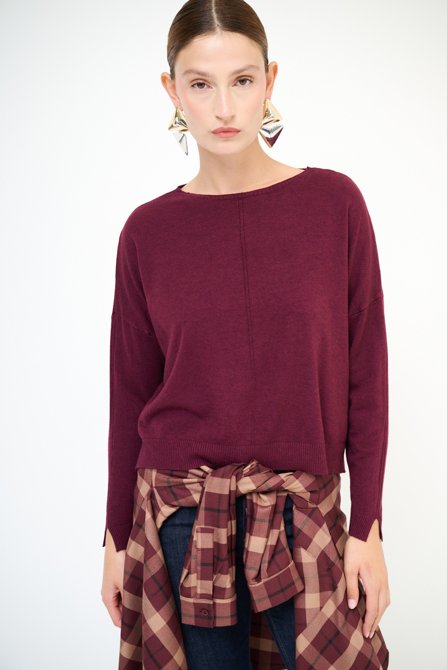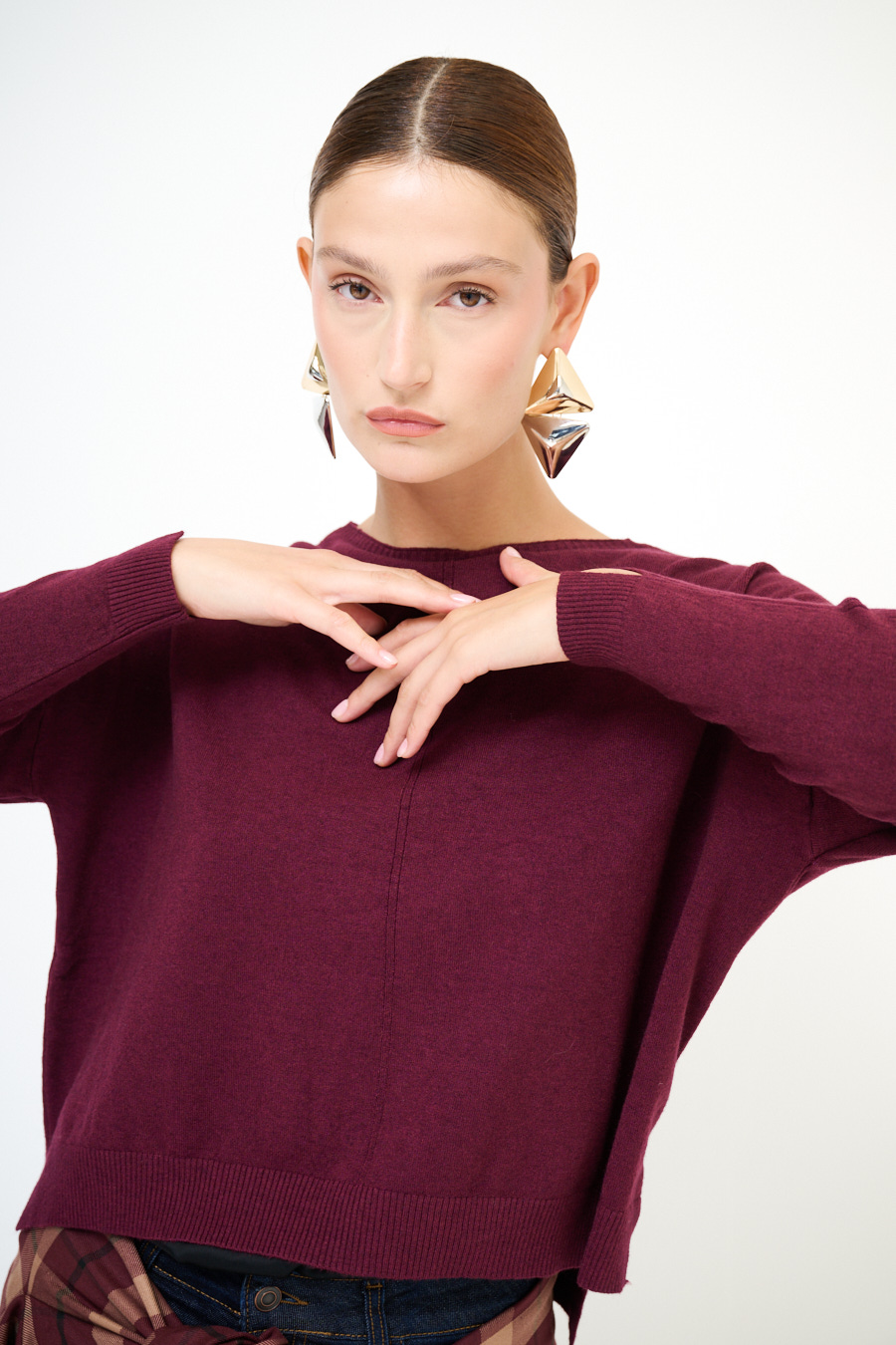 MAGLIA SCATOLINA GIROCOLLO VINO