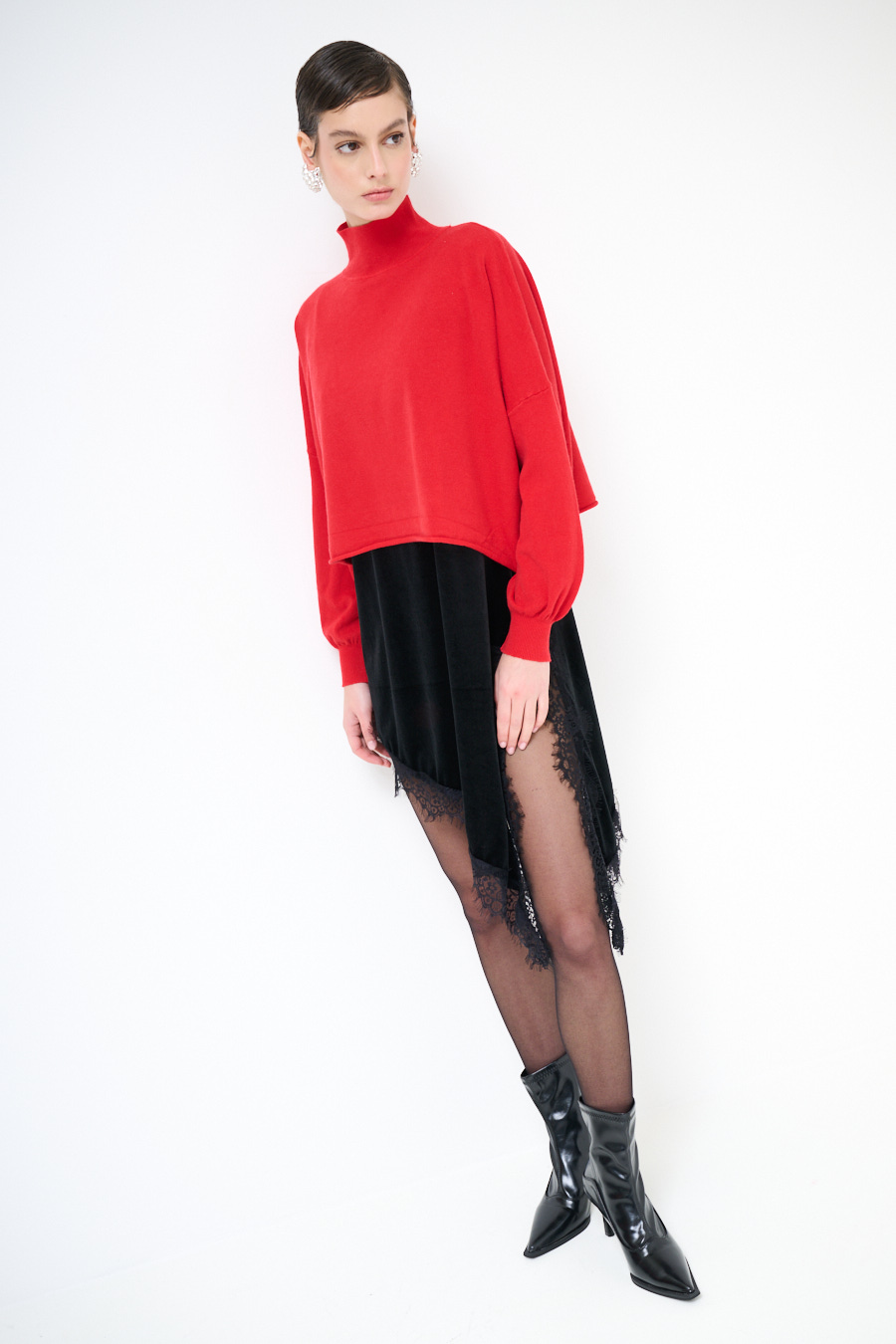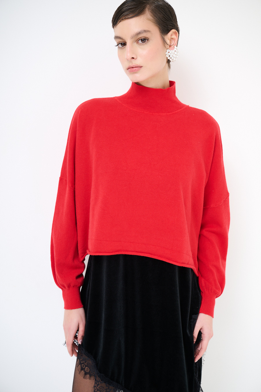 MAGLIA SCATOLINA MEZZO COLLO ROSSO