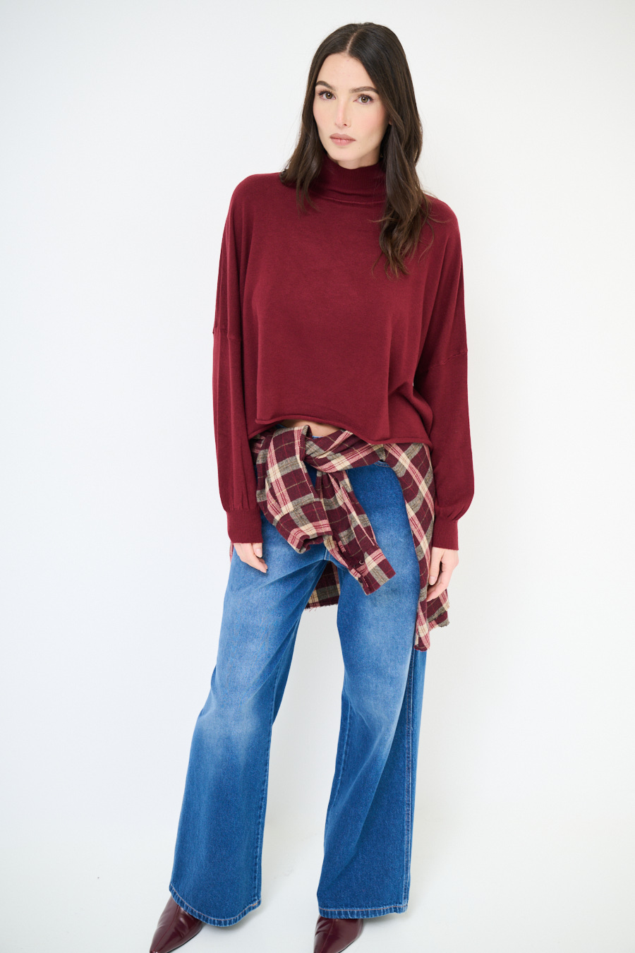 MAGLIA SCATOLINA MEZZO COLLO VINO