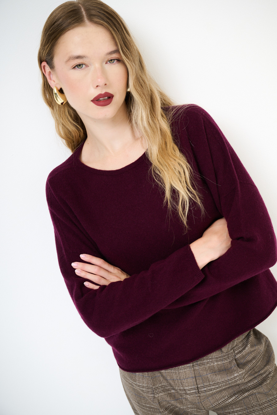 MAGLIA SCATOLINA TAGLIOVIVO FONDO MISTO CACHEMIRE VINO