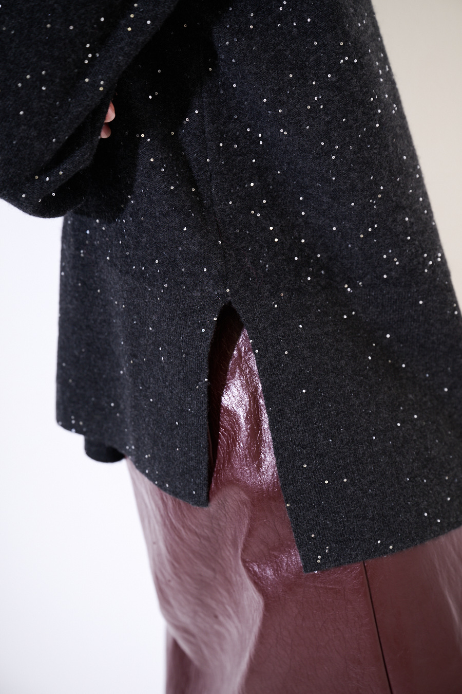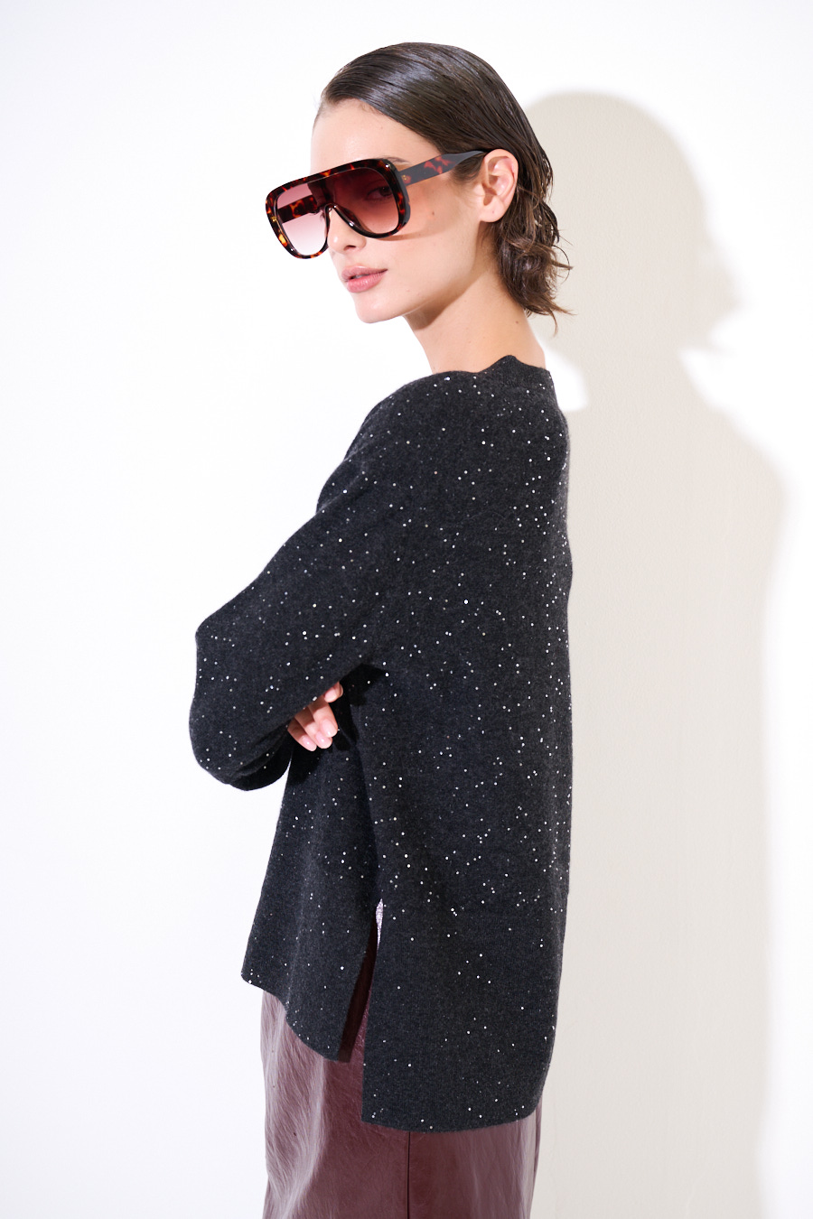 MAGLIA SCOLLO V MICROPAILLETTES LANA CACHEMIRE GRIGIO ANTRACITE