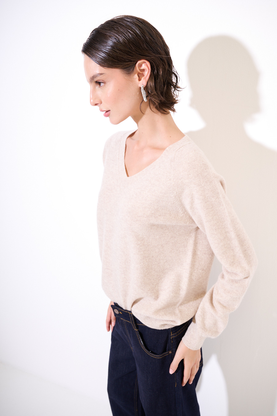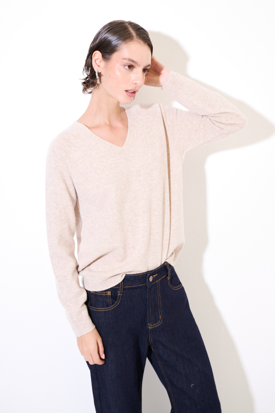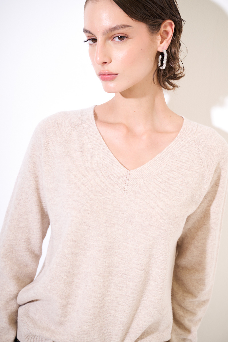 MAGLIA SCOLLO V MISTO CACHEMIRE BEIGE