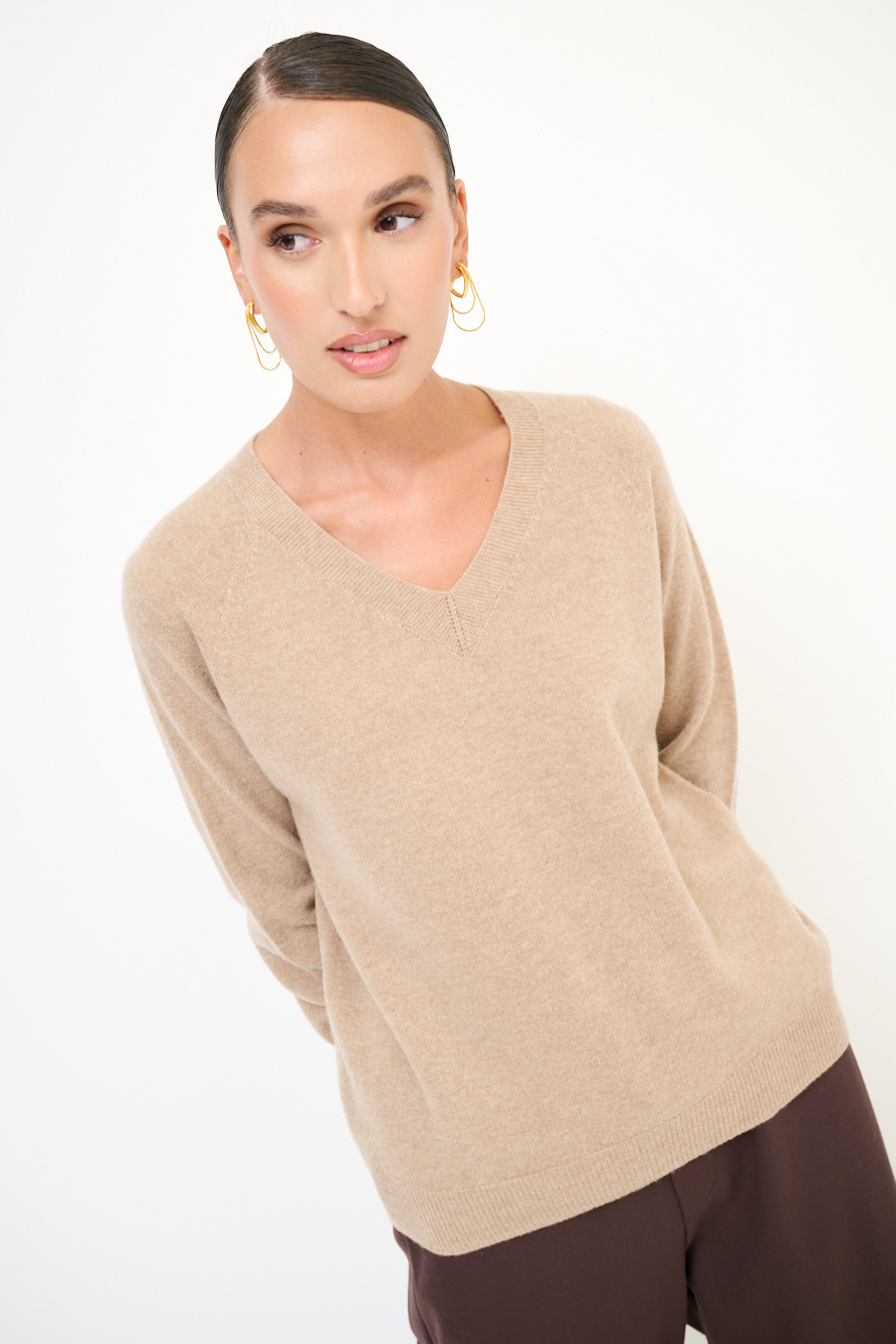 MAGLIA SCOLLO V MISTO CACHEMIRE CAMMELLO