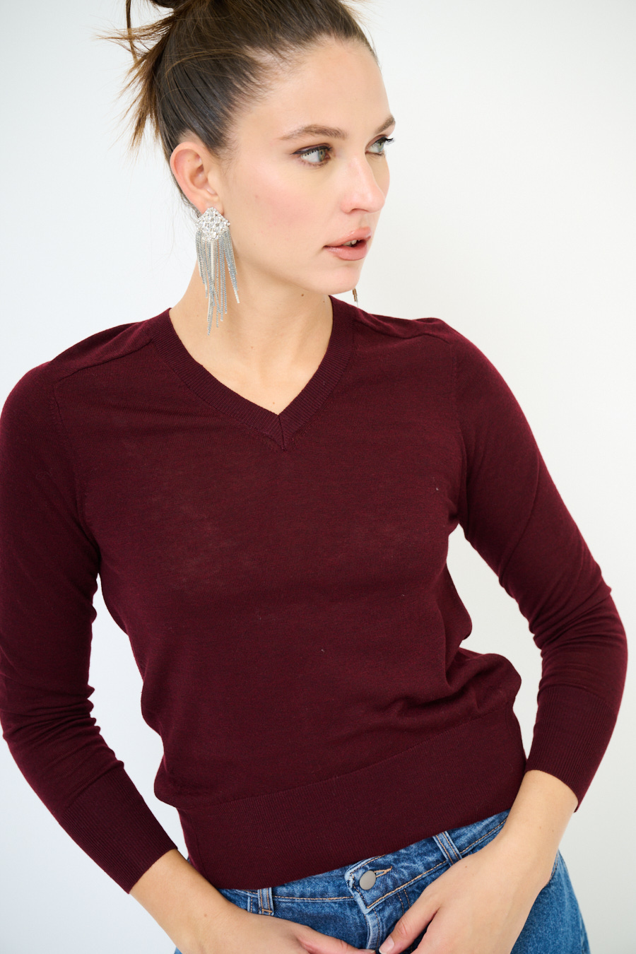 MAGLIA SCOLLO V MISTO LANA MERINOS BORDEAUX