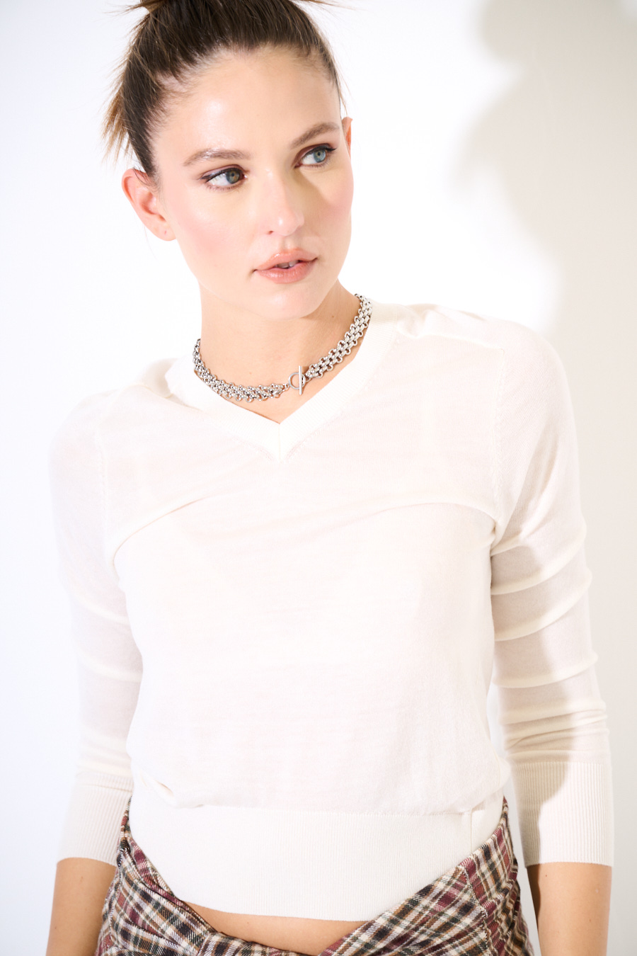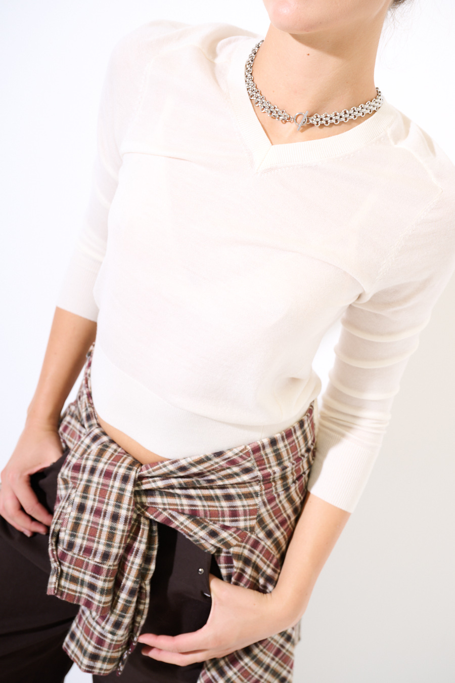 MAGLIA SCOLLO V MISTO LANA MERINOS BURRO