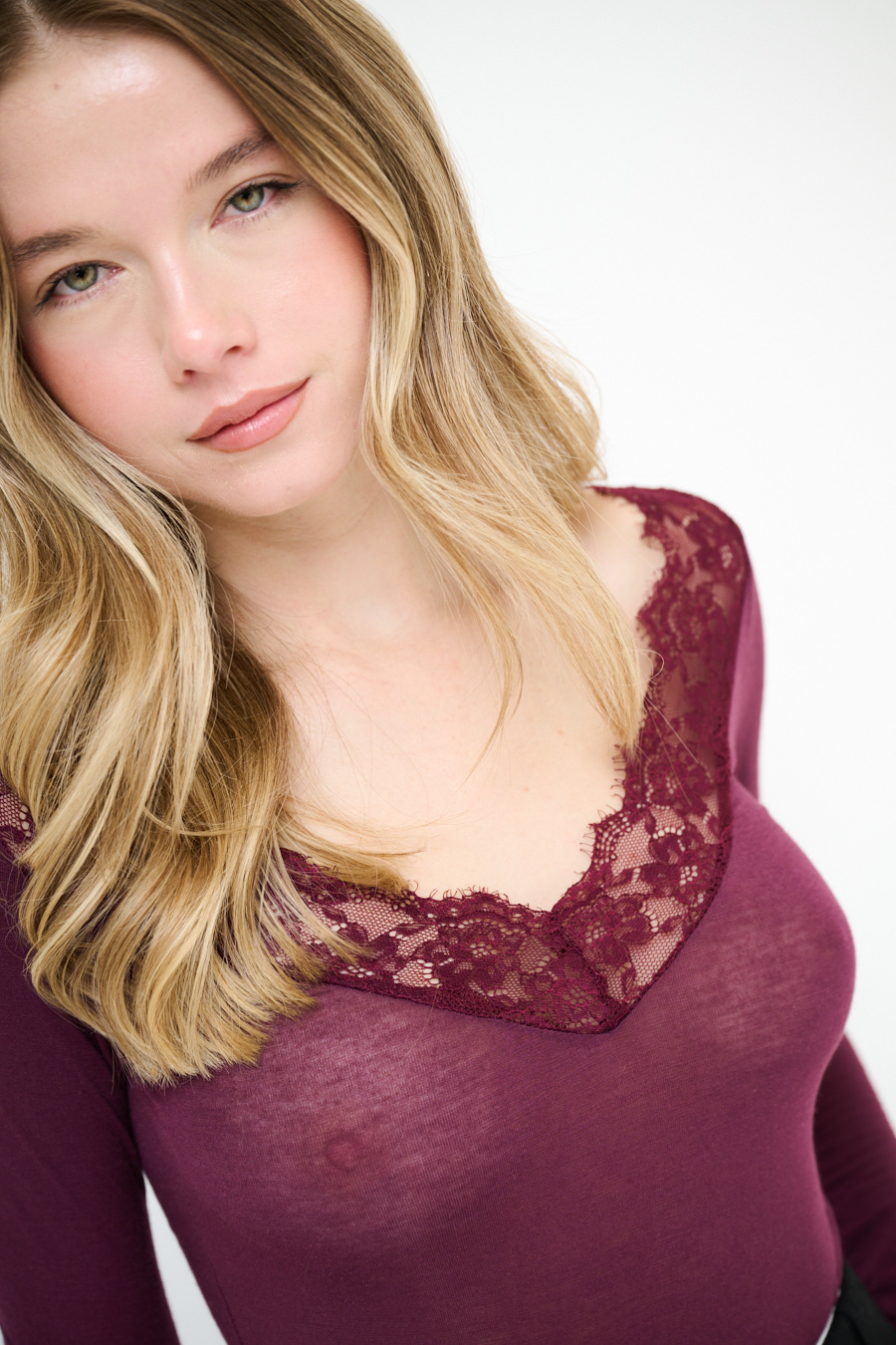 MAGLIA SCOLLO V PIZZO VISCOSA CACHEMIRE VINO