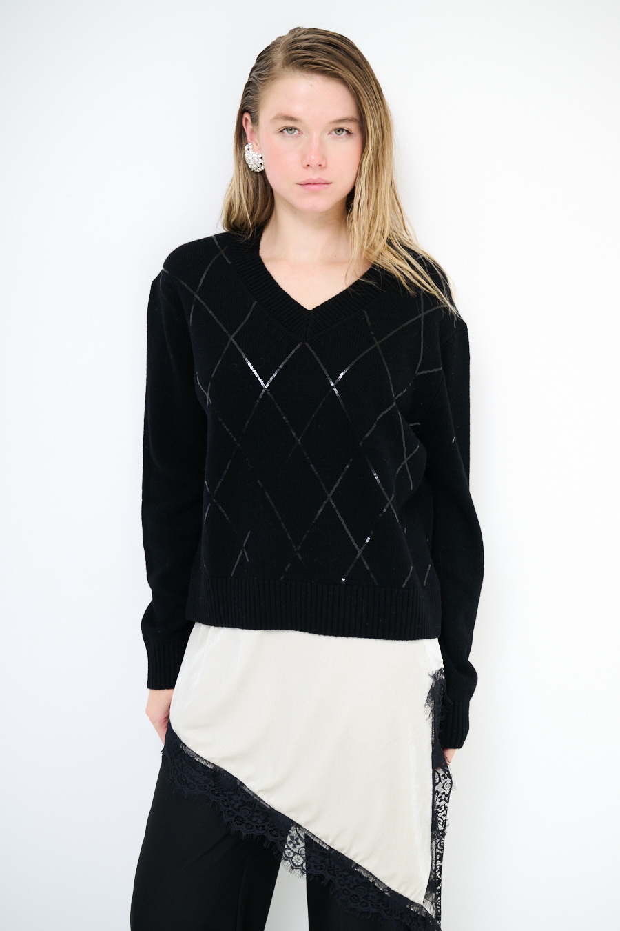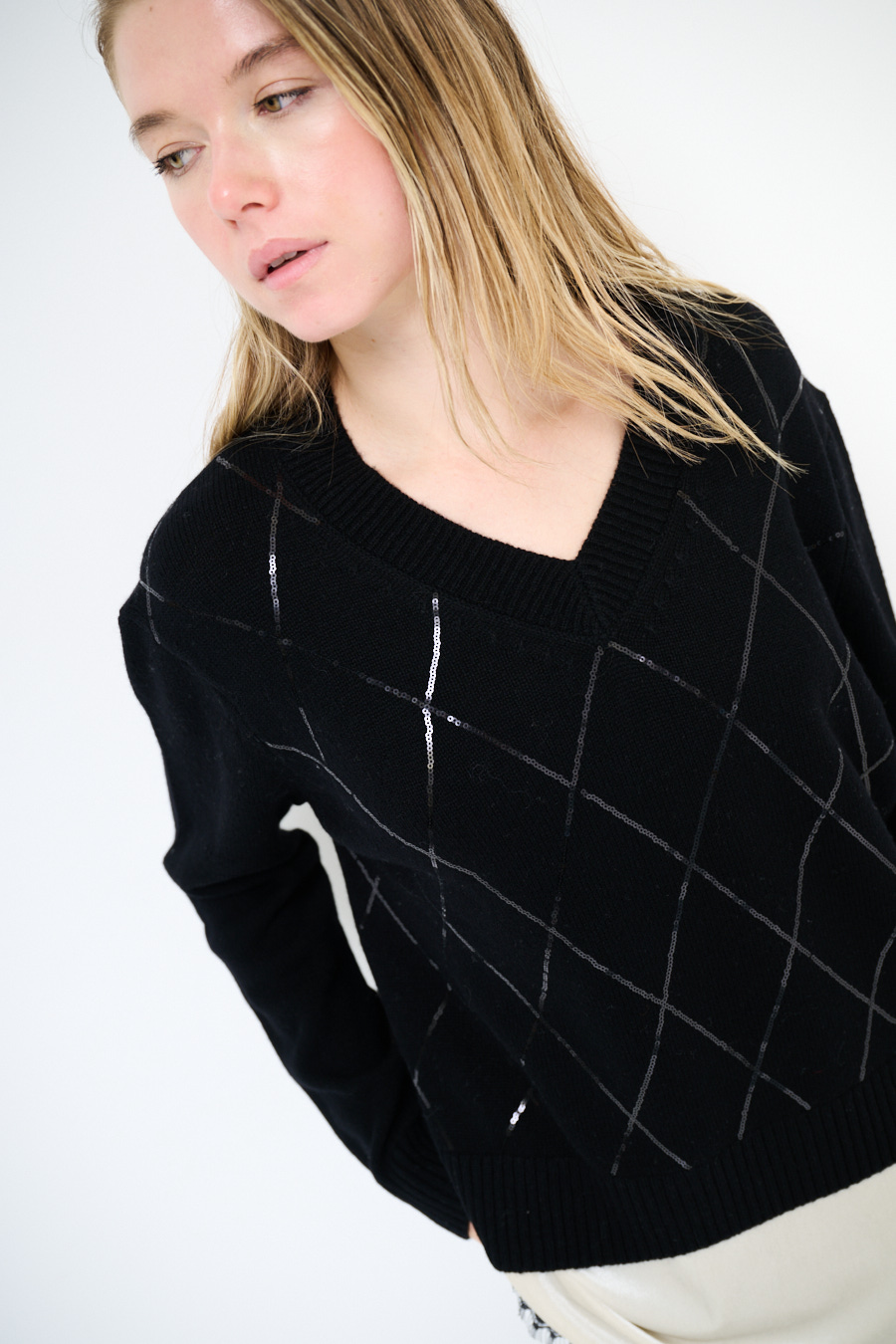 MAGLIA SCOLLO V ROMBI PAILLETTES NERO