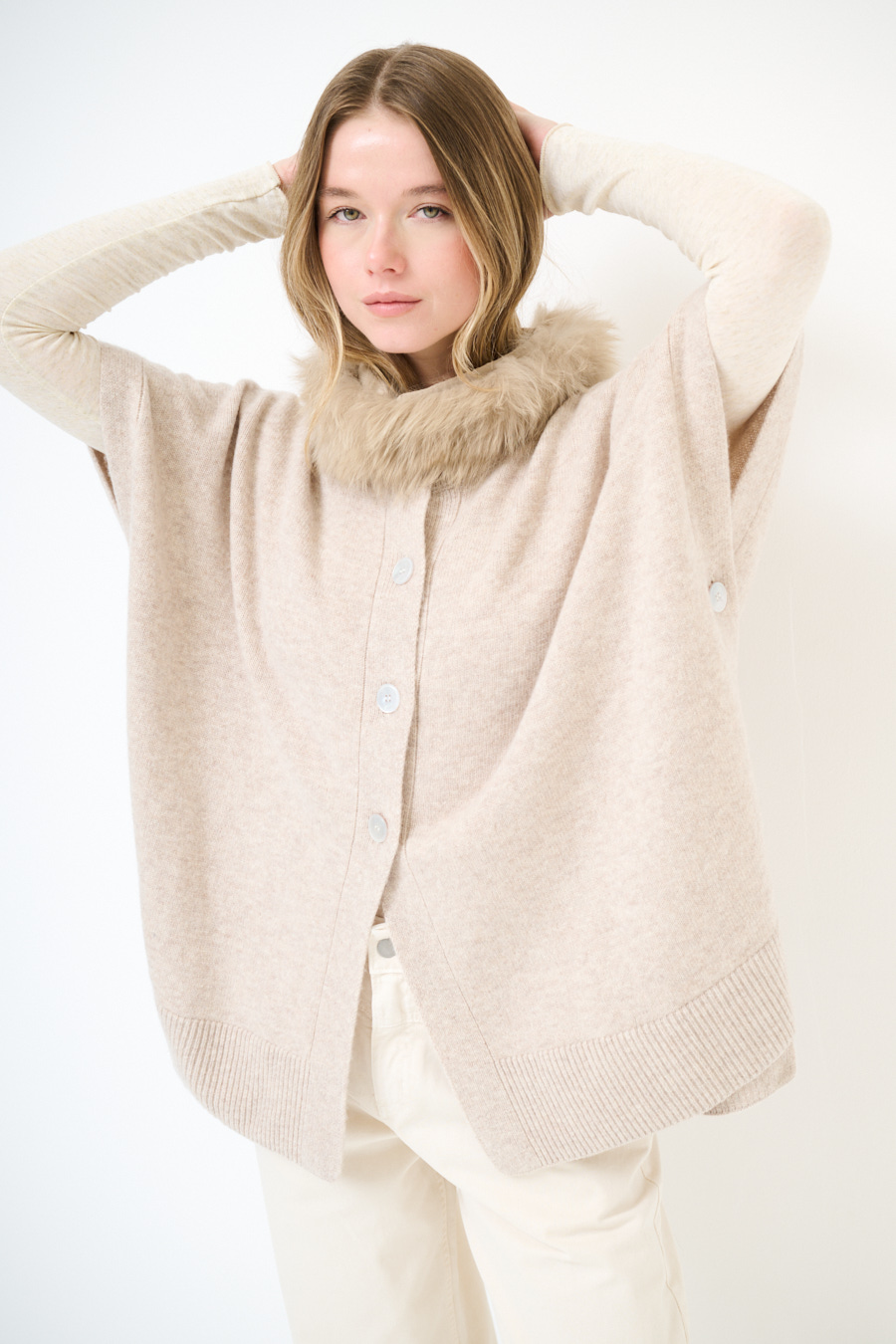 MANTELLA CON BOTTONI E COLLO PELLICCIA BEIGE