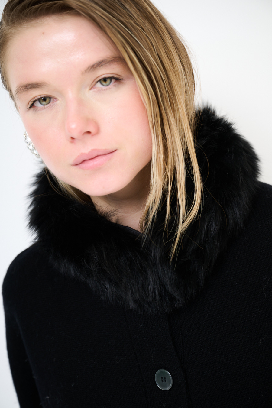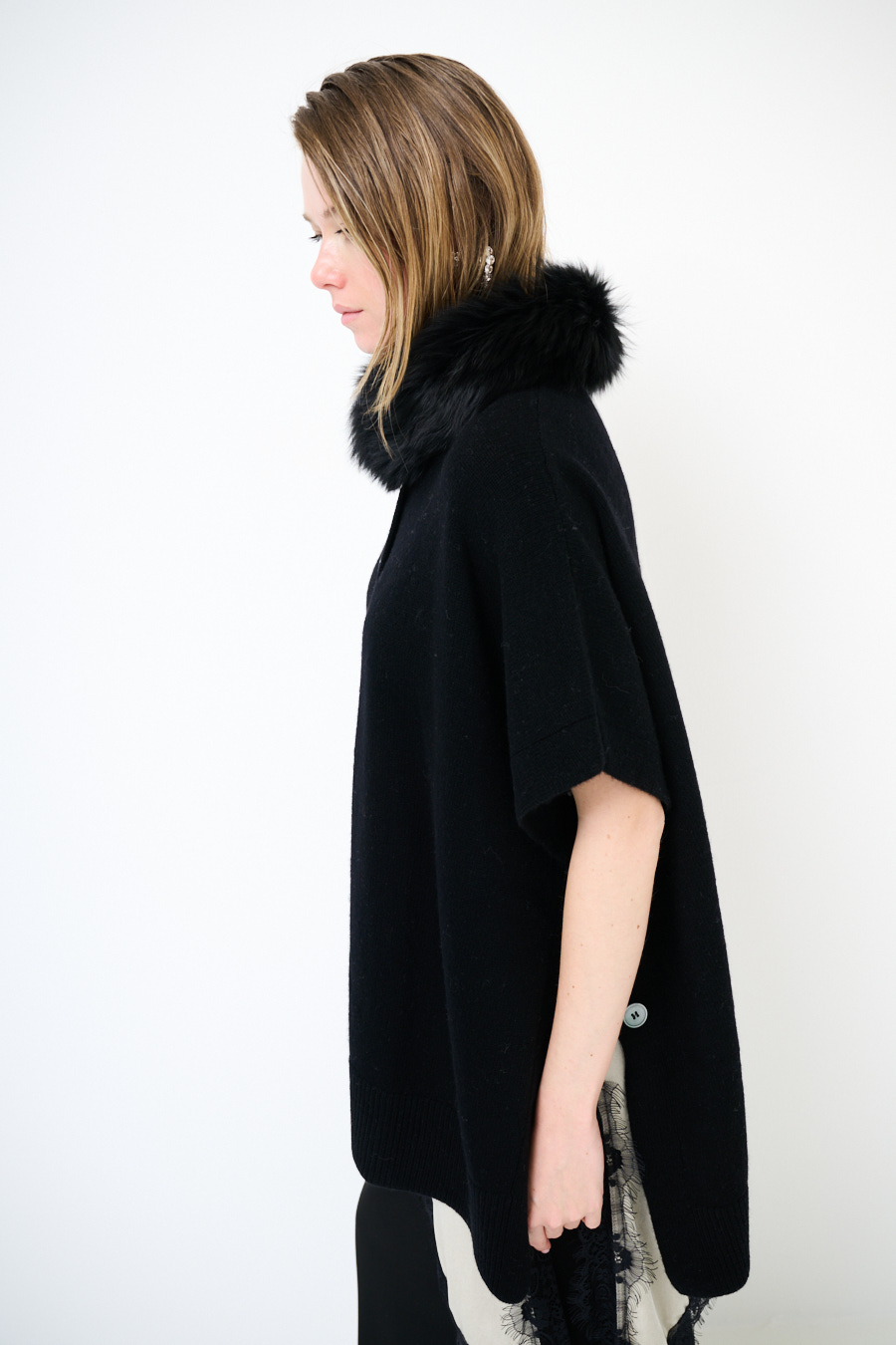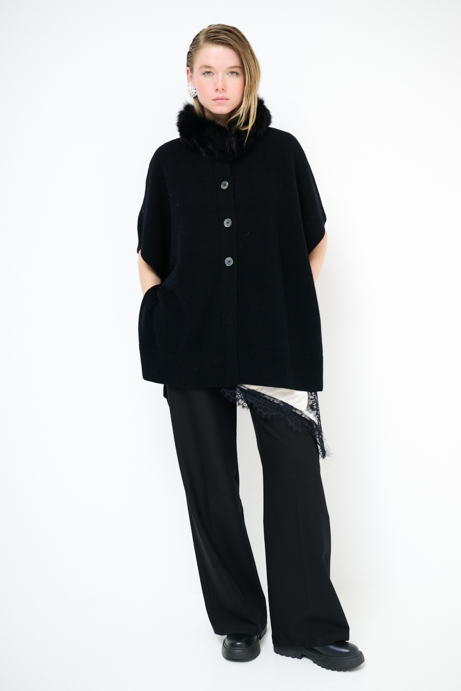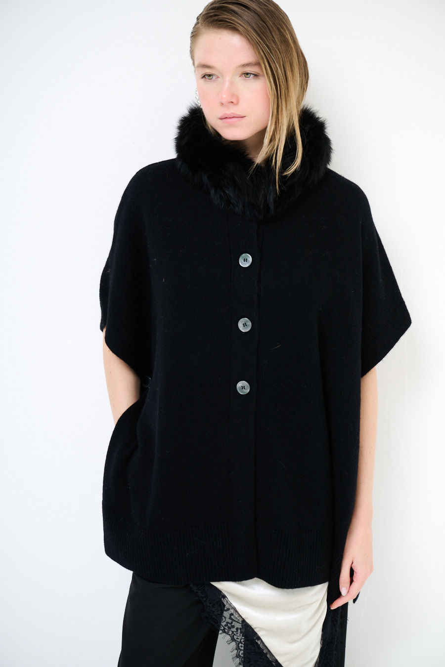 MANTELLA CON BOTTONI E COLLO PELLICCIA NERO