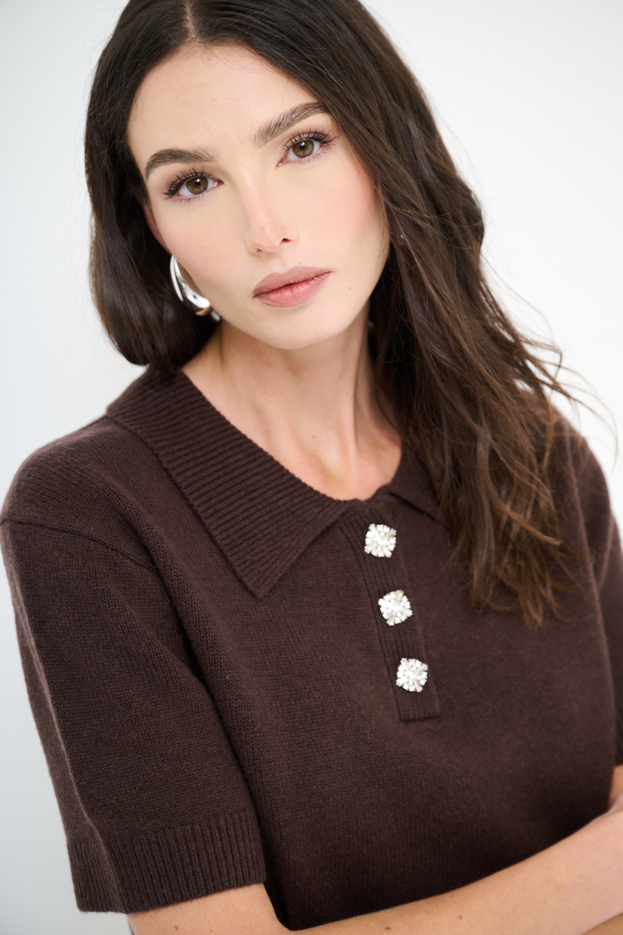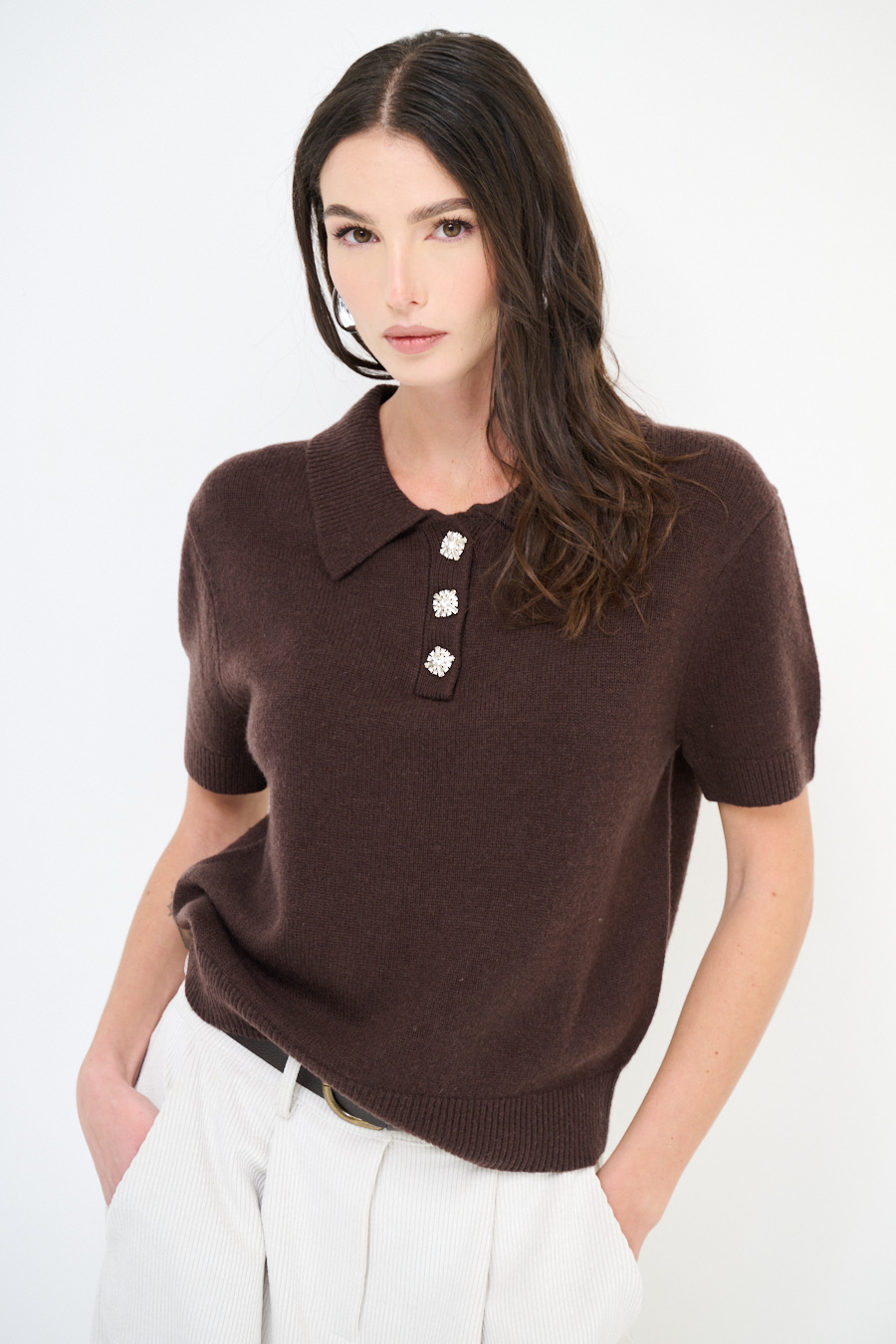 Maglia polo a mezza manica con bottoni gioiello.