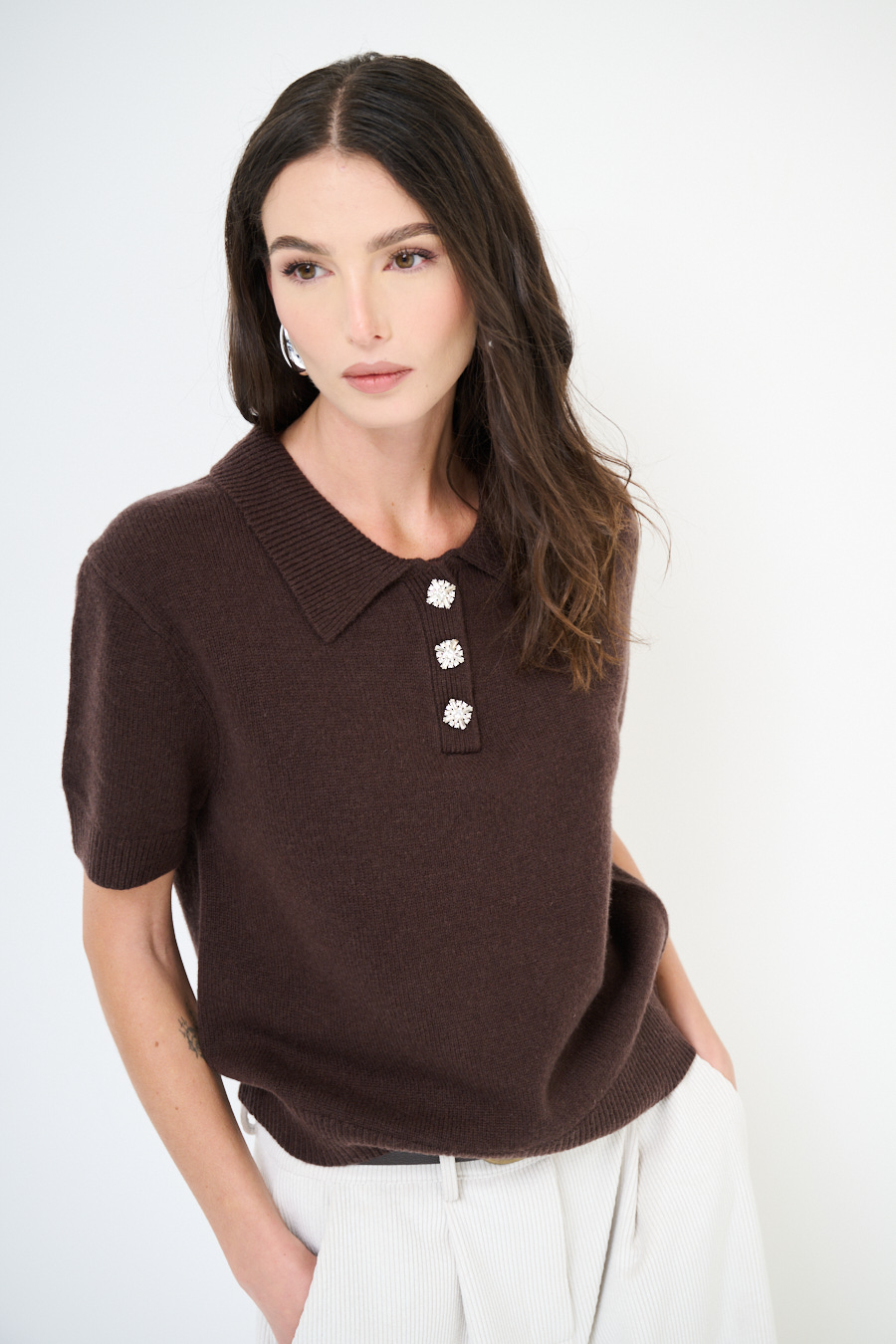 POLO MANICA CORTA BOTTONI GIOIELLO MORO