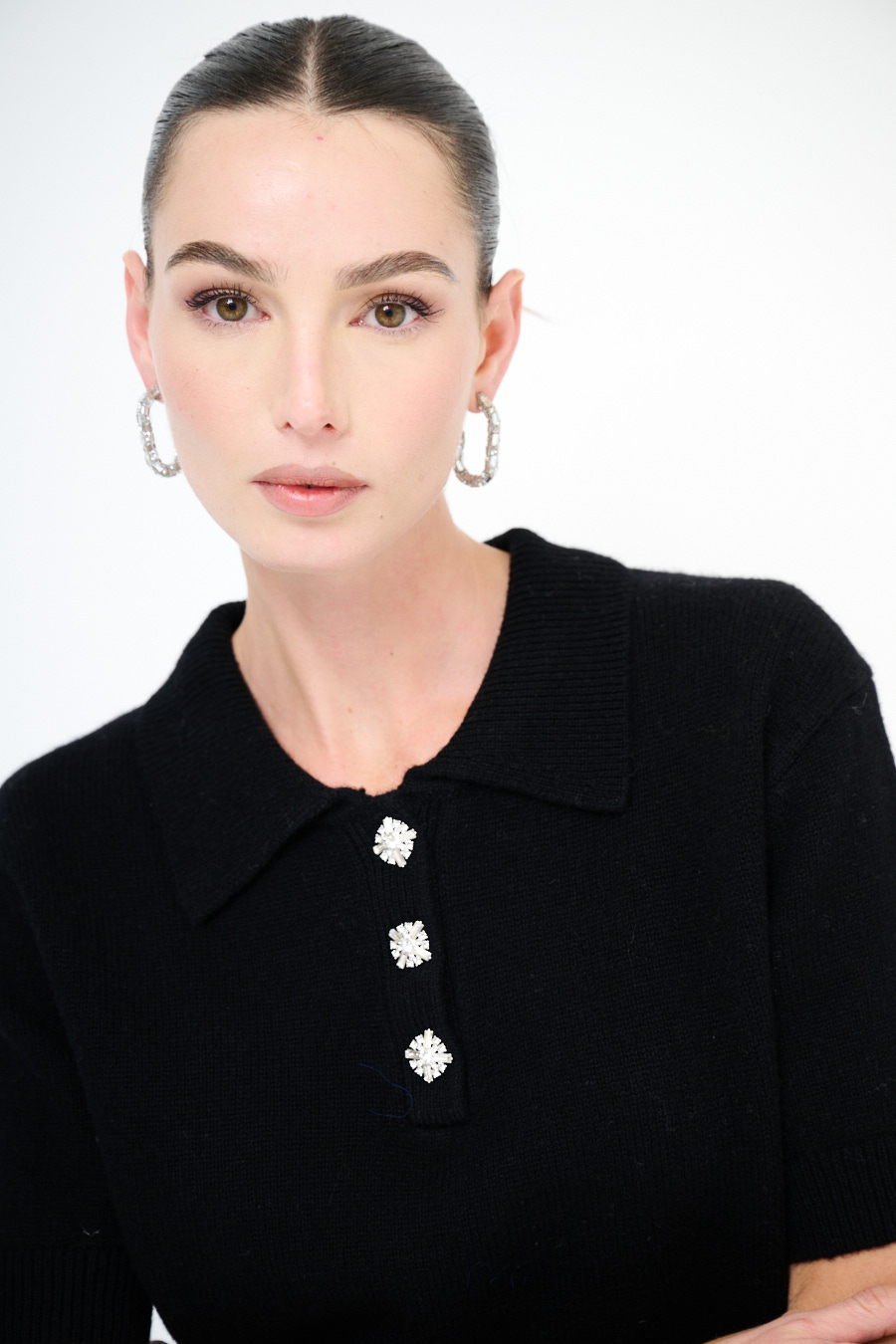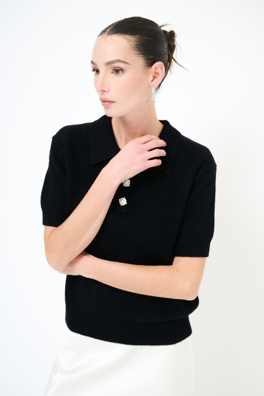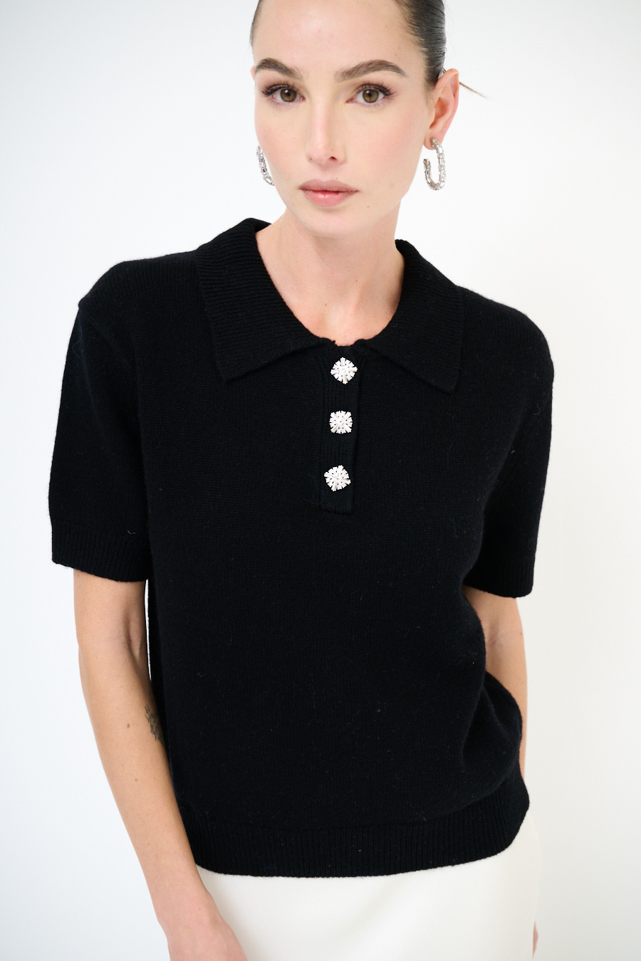 POLO MANICA CORTA BOTTONI GIOIELLO NERO