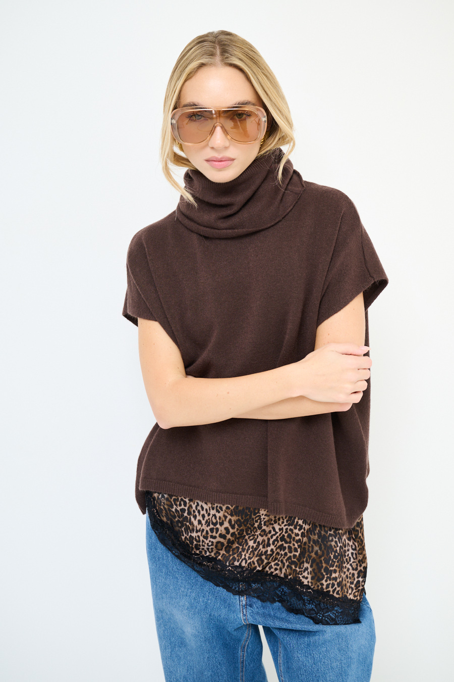 Poncho in maglia con collo alto.