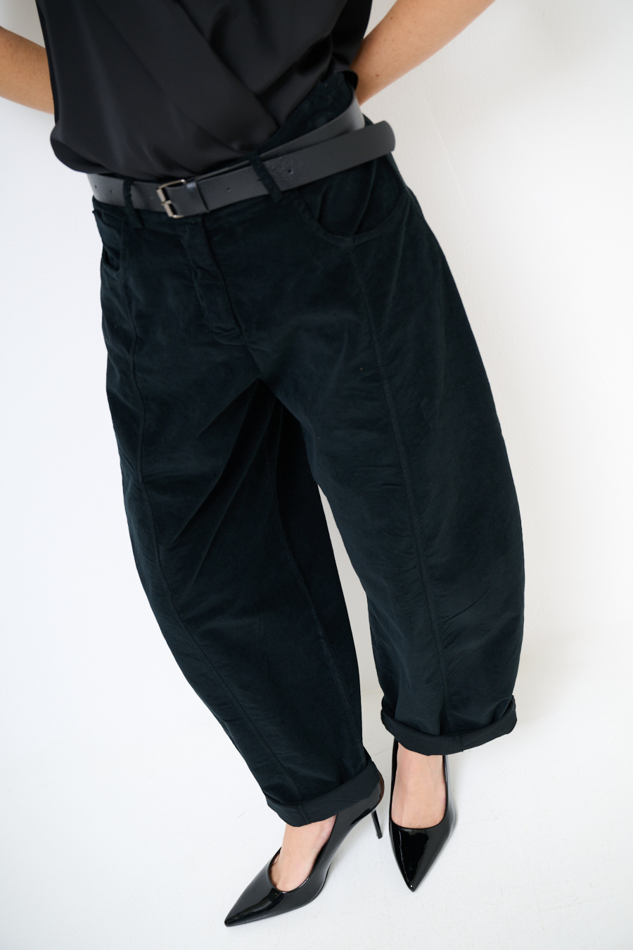 PANTA OVETTO TAGLI DAV. CINTURINO REGOLARE 1 BOTTONE NERO