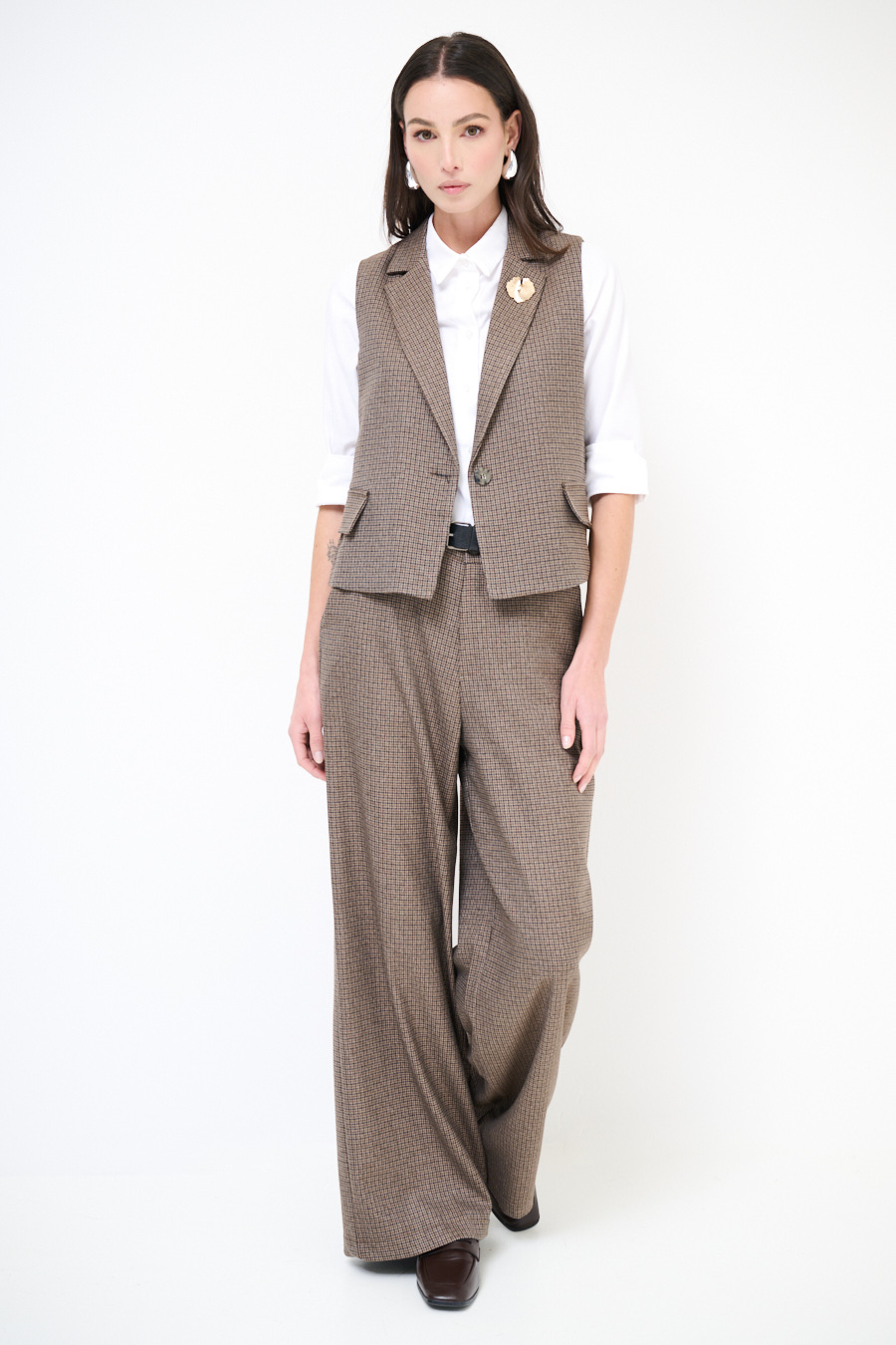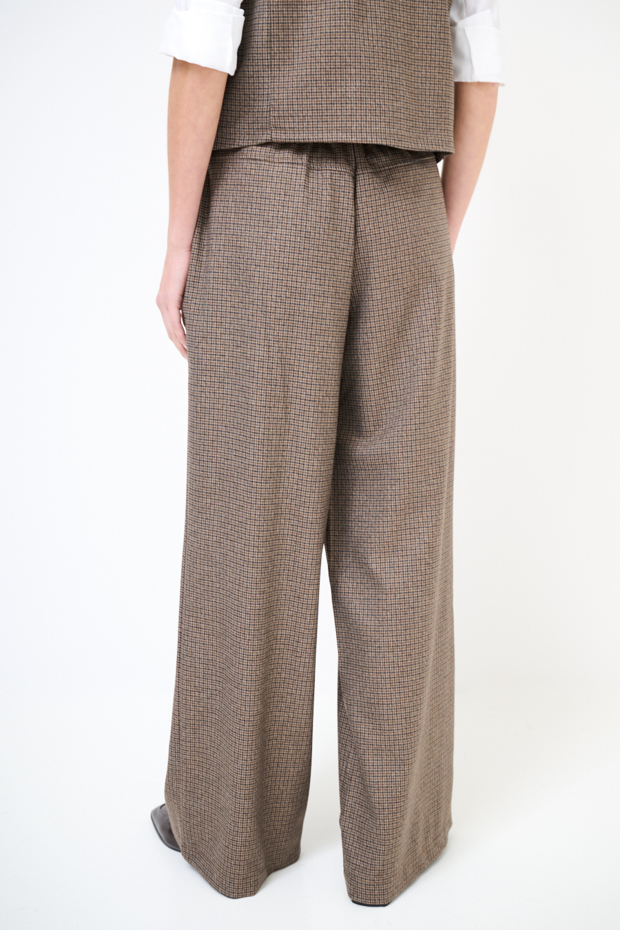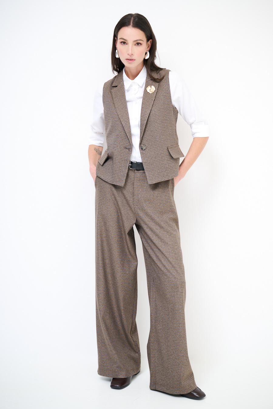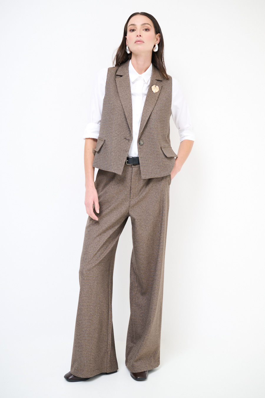 Panta palazzo pied de poule ampio sul fondo e con cintura in vita.