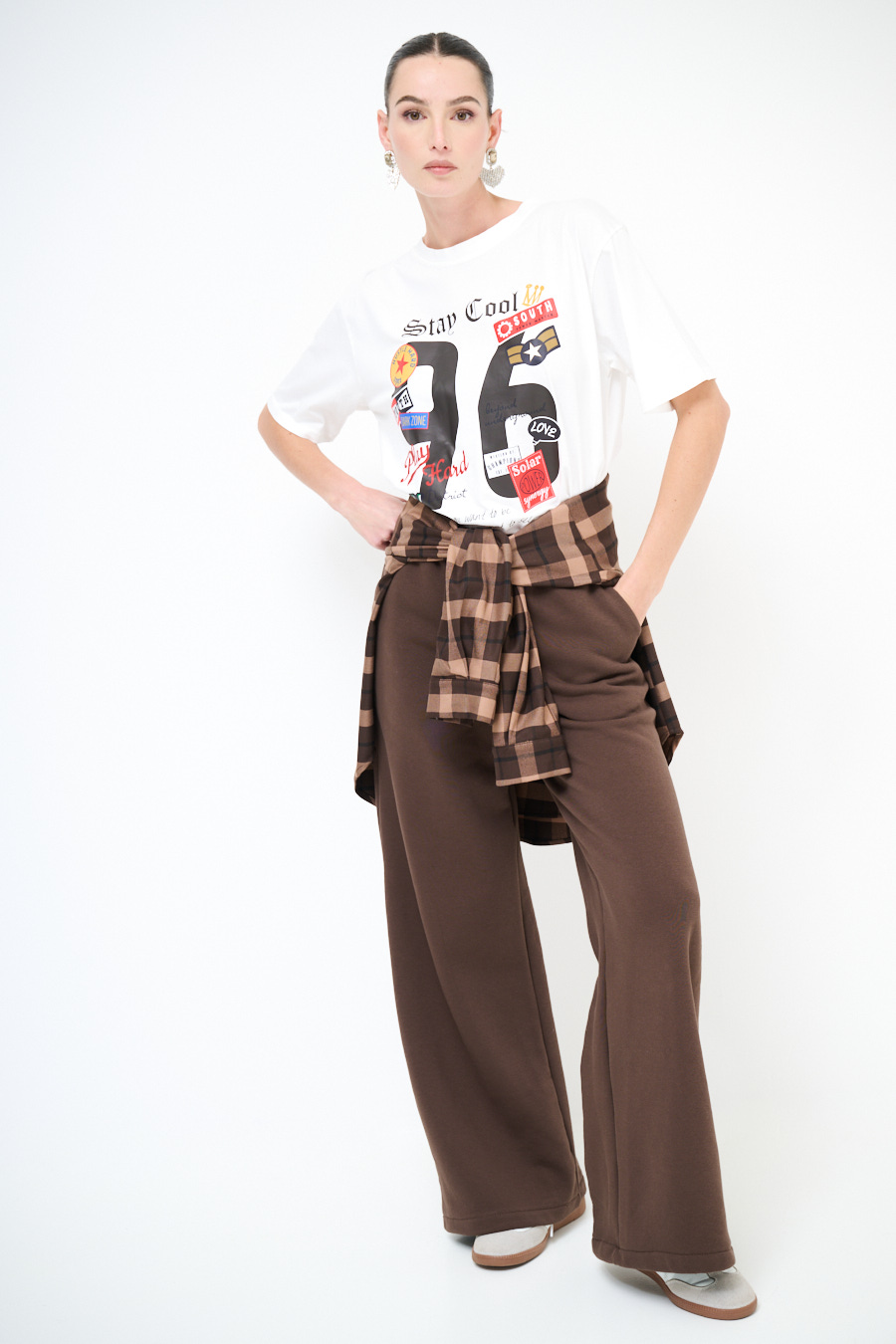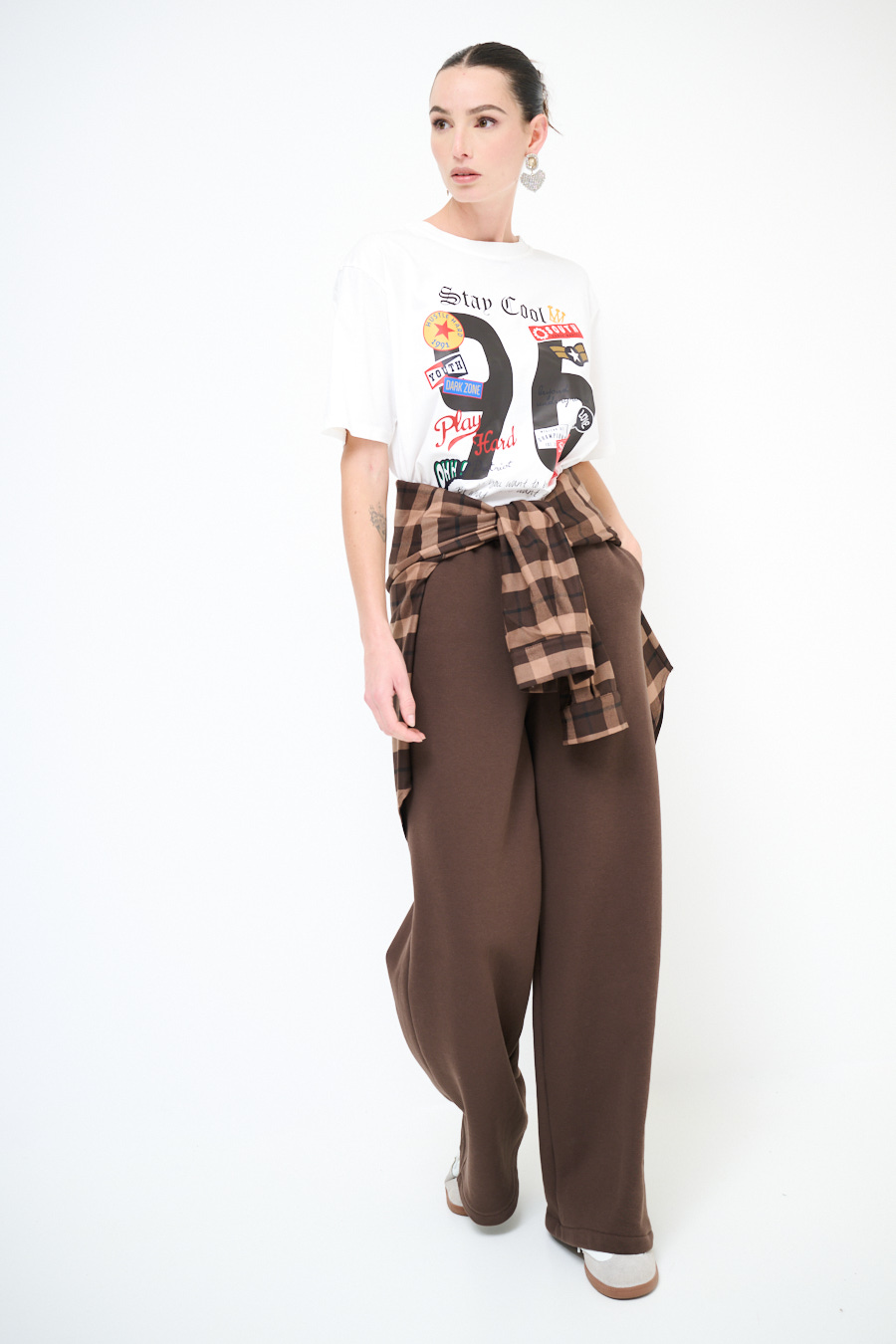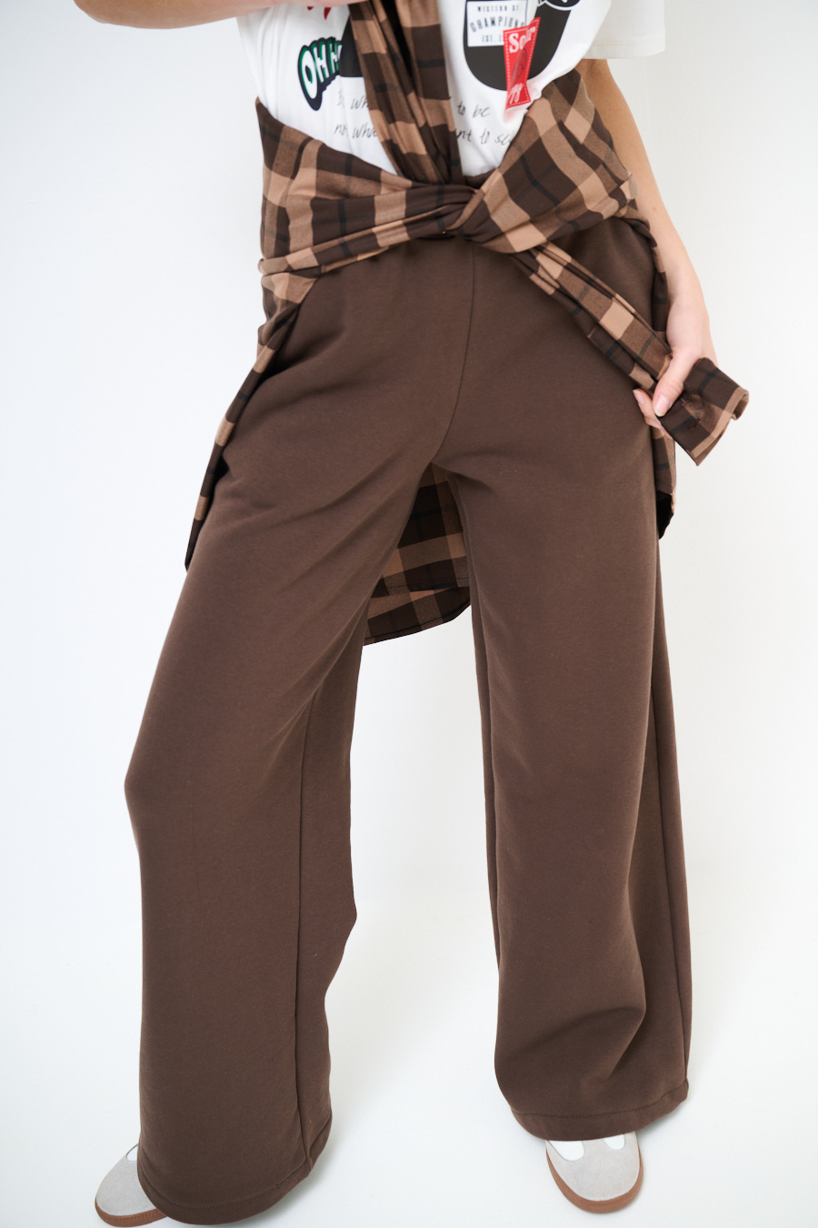 PANTA PALAZZO + COULISSE FELPA FELPATA CIOCCOLATO