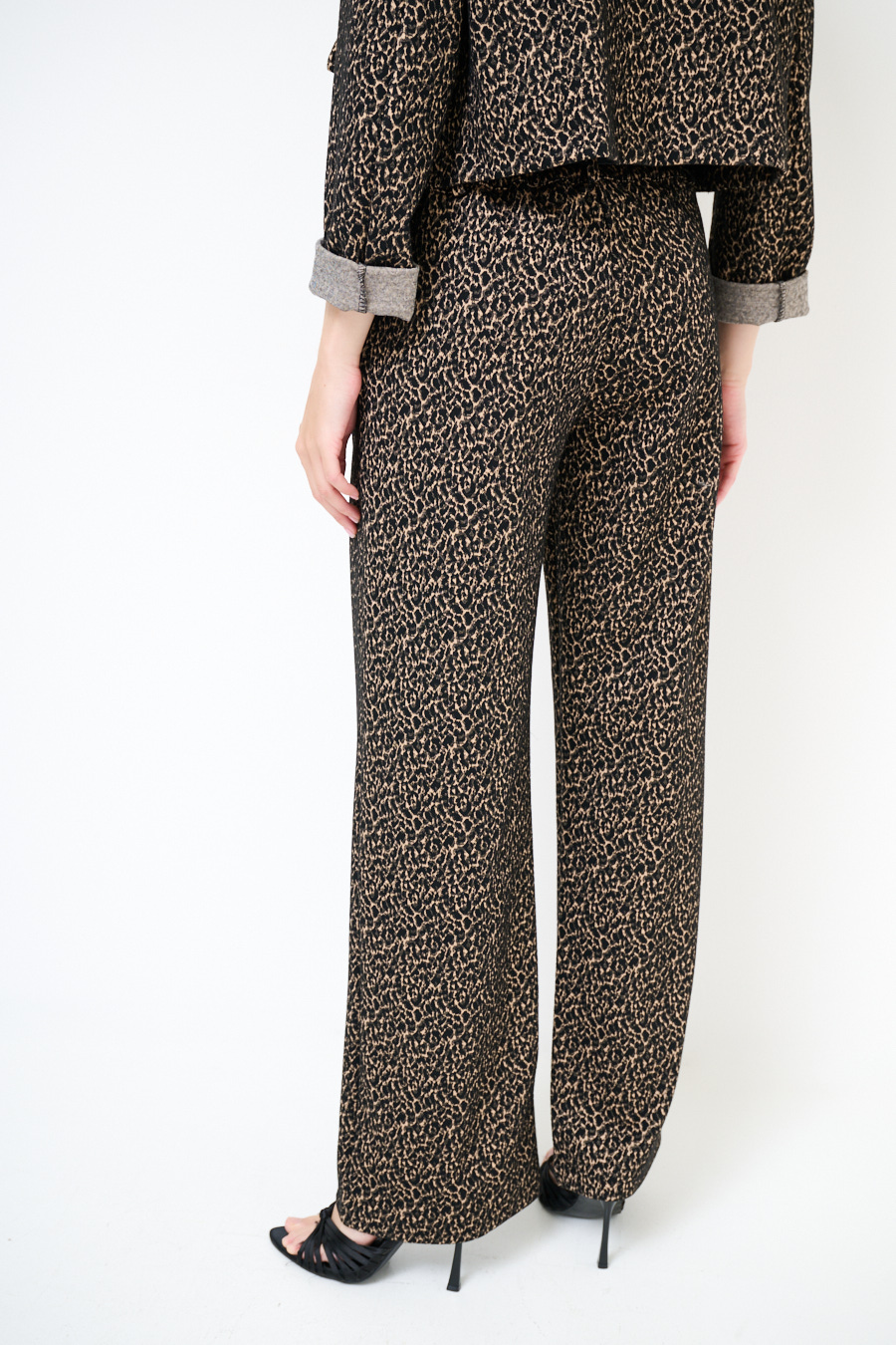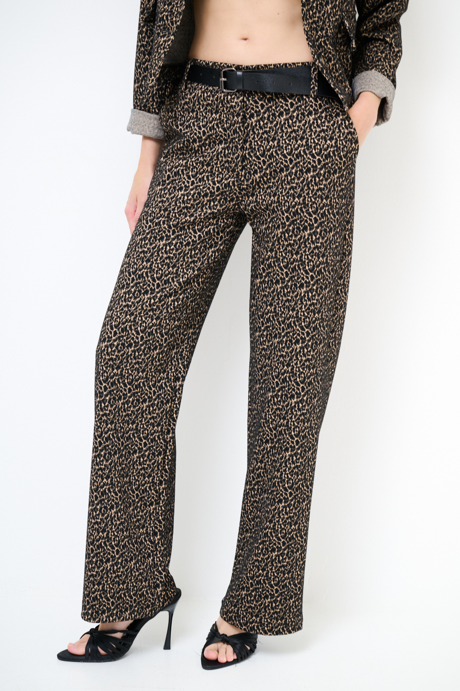 Pantalone regular a fantasia maculata con cintura in ecopelle in vita.