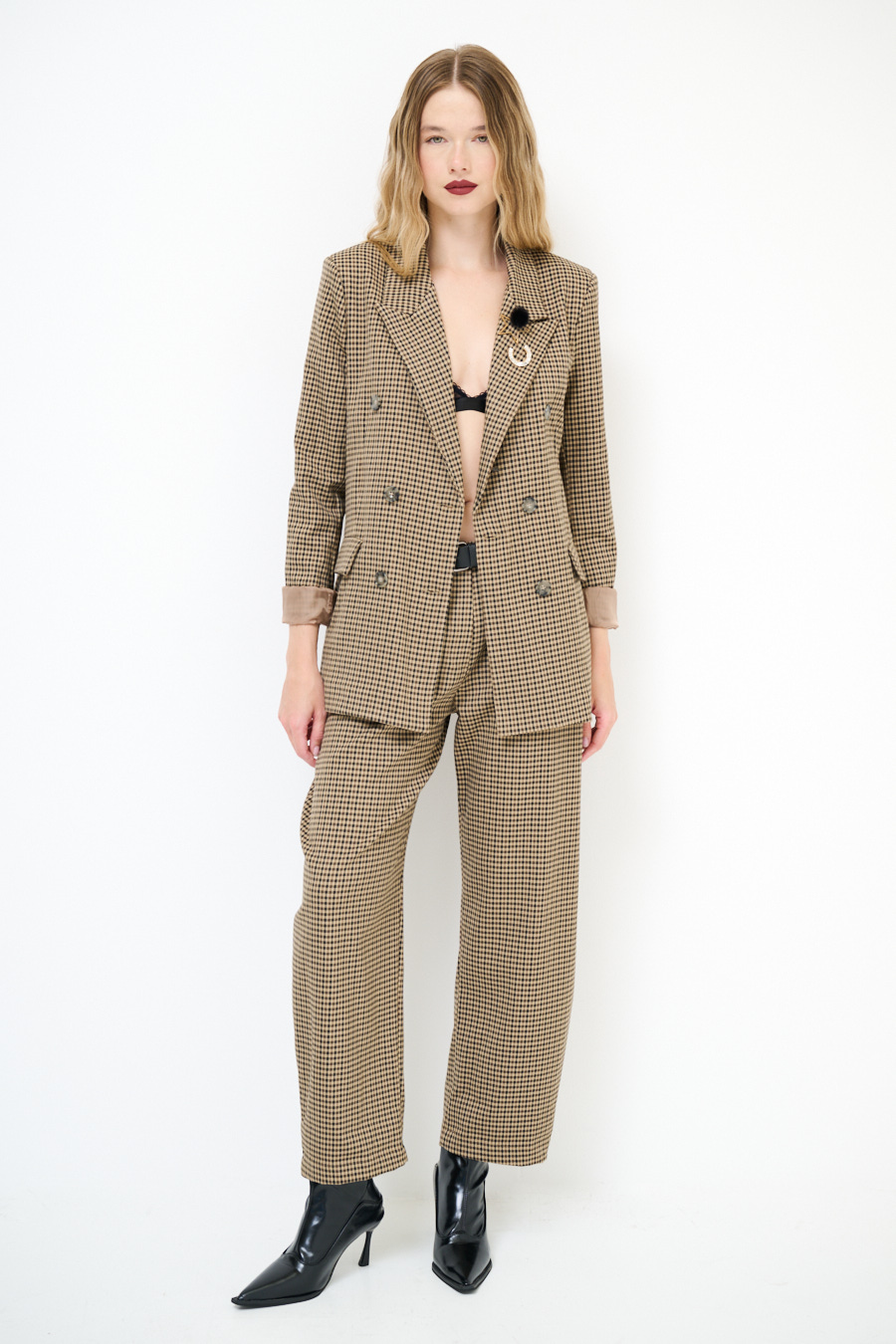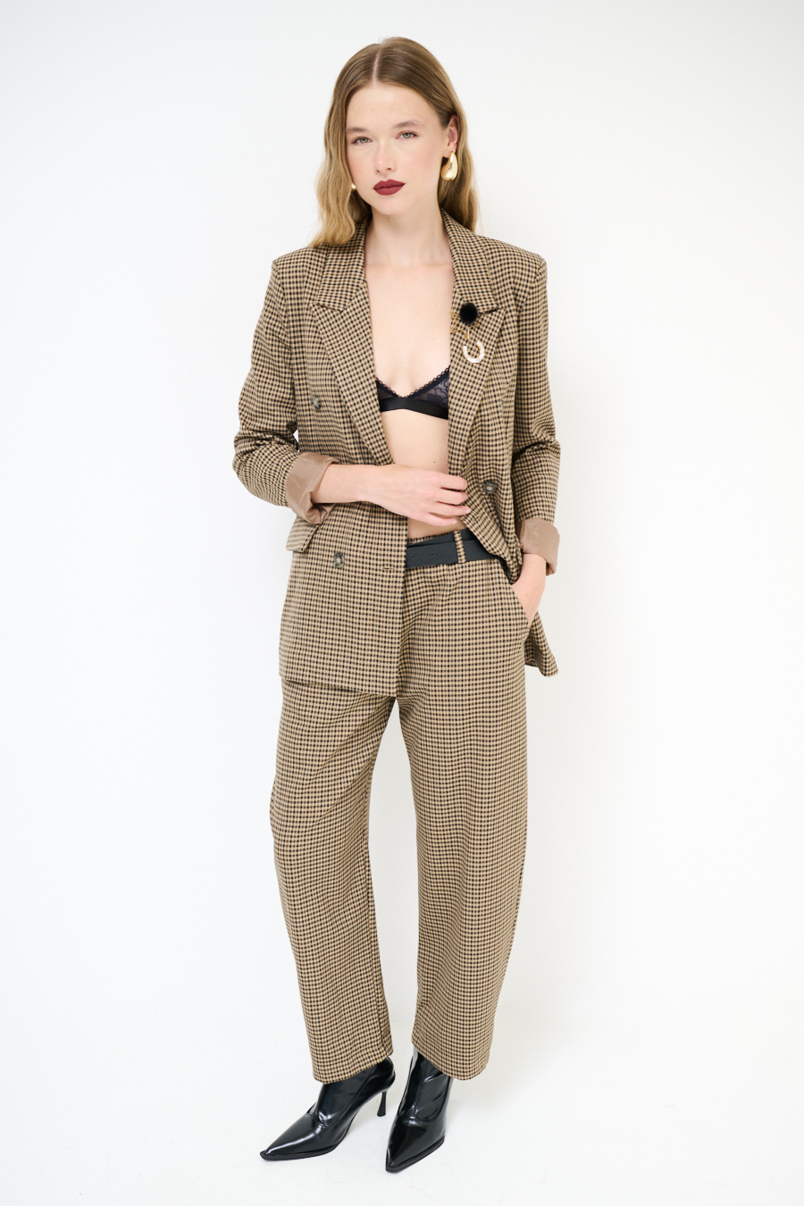 Pantalone carrort fit a pied de poule, con elastico e cinturain vita.