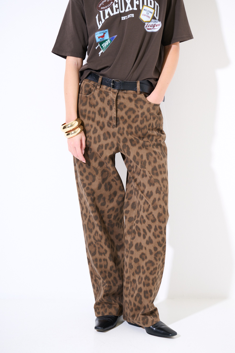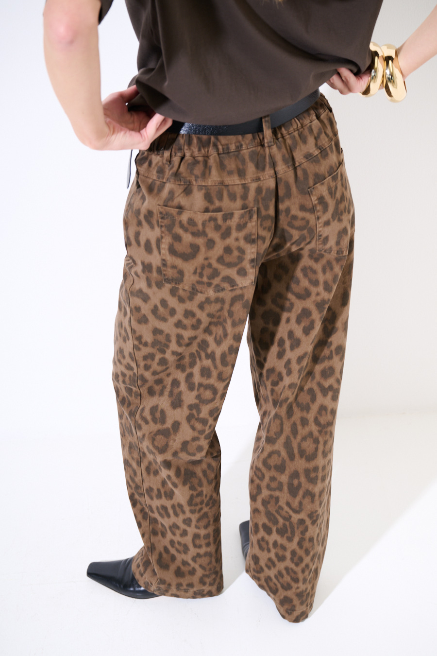 Pantalone con stampa maculata regular ampio, con cintura in vita.