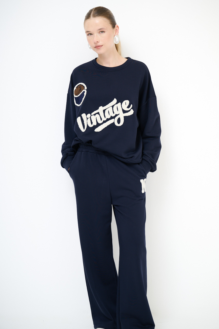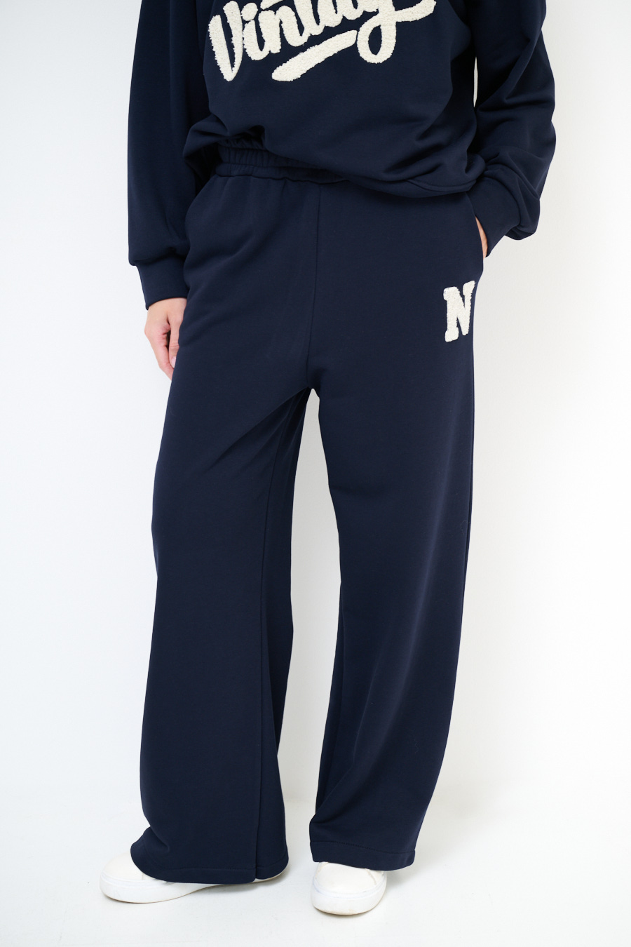 Pantalone in felpa garzata ampio con elastico in vita e ricamo N sul fianco.