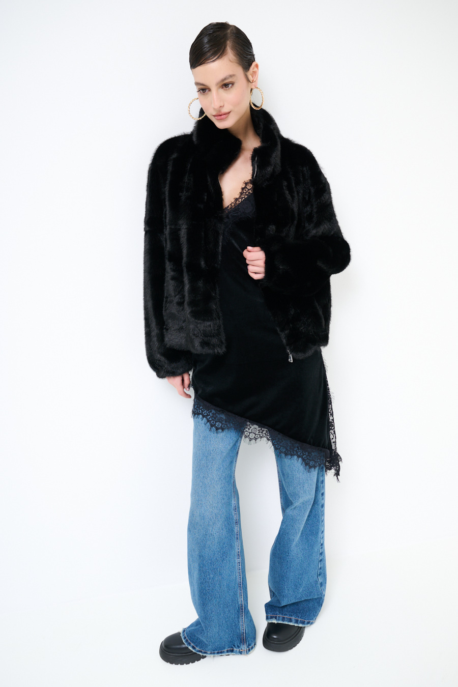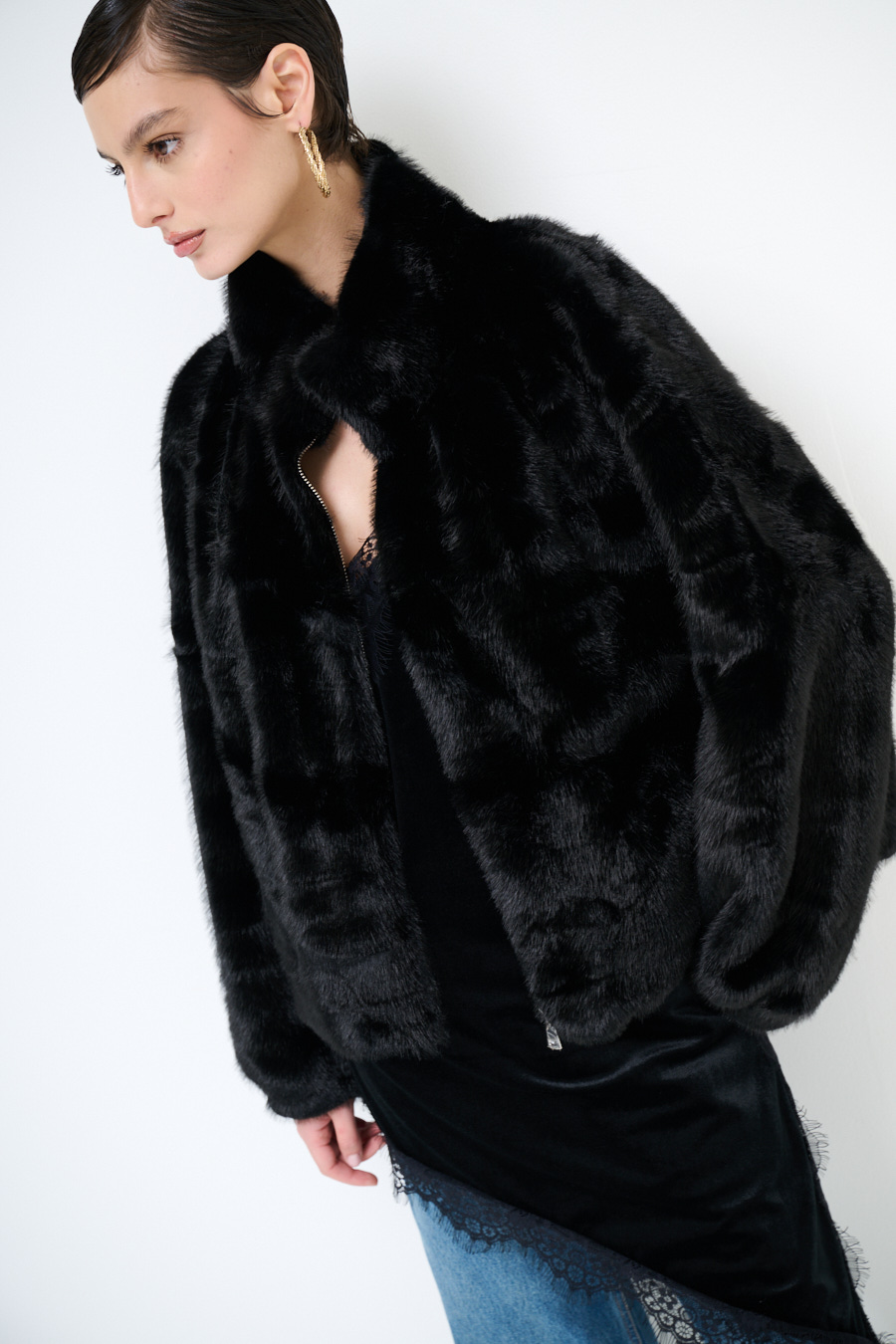 PELLICCIA CORTO COLLO ALTO NERO