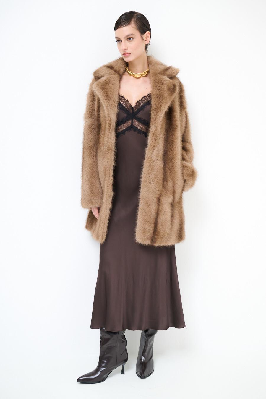 PELLICCIA LUNGA STRIATURE CAMMELLO
