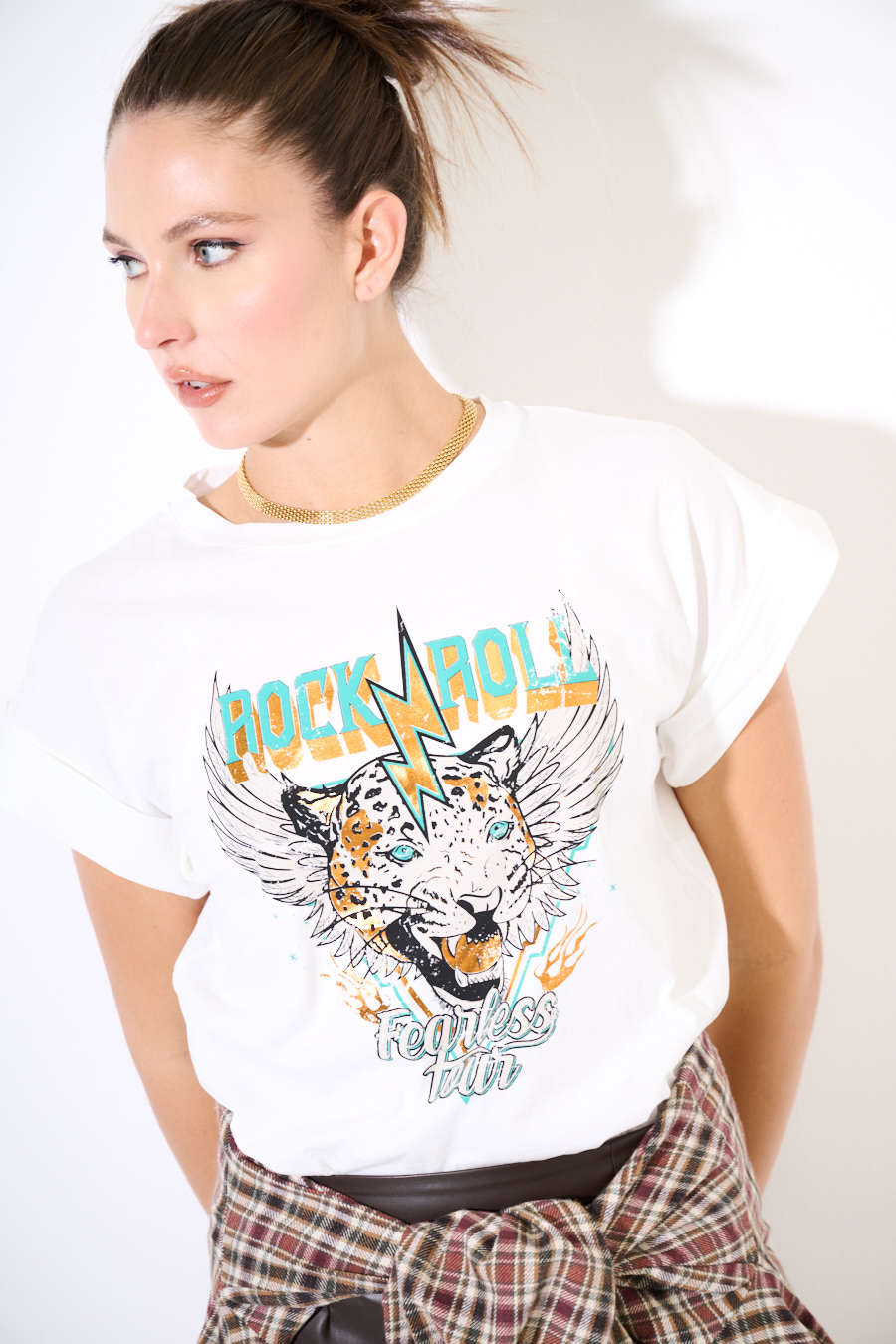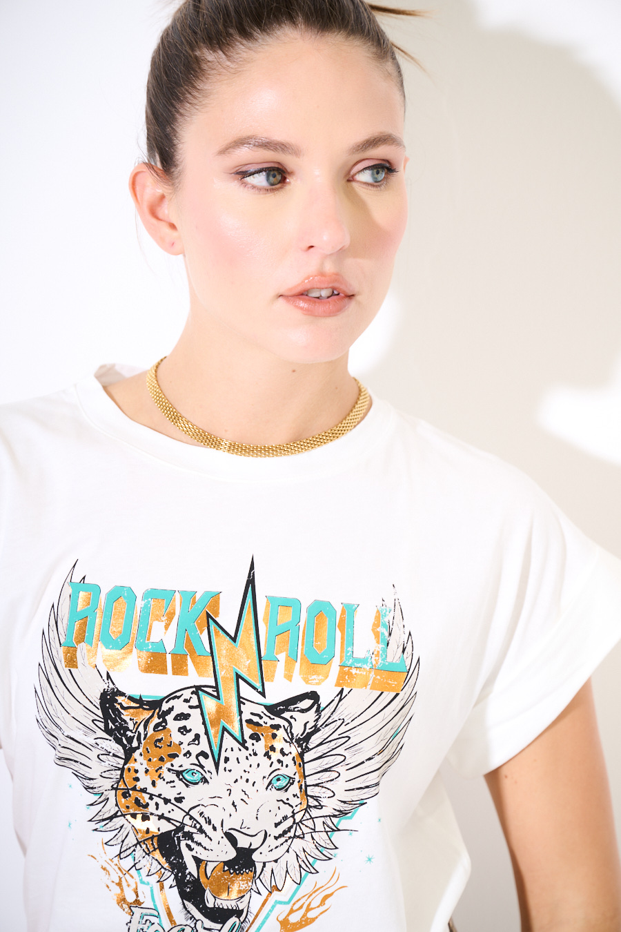 T-SHIRT MARMORIZZATO TIGRE ROCK N ROLL BIANCO