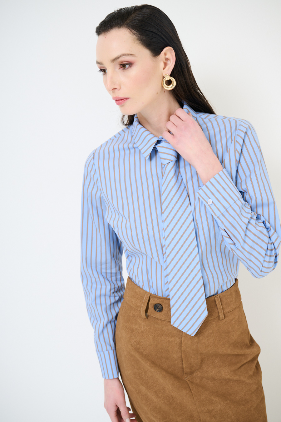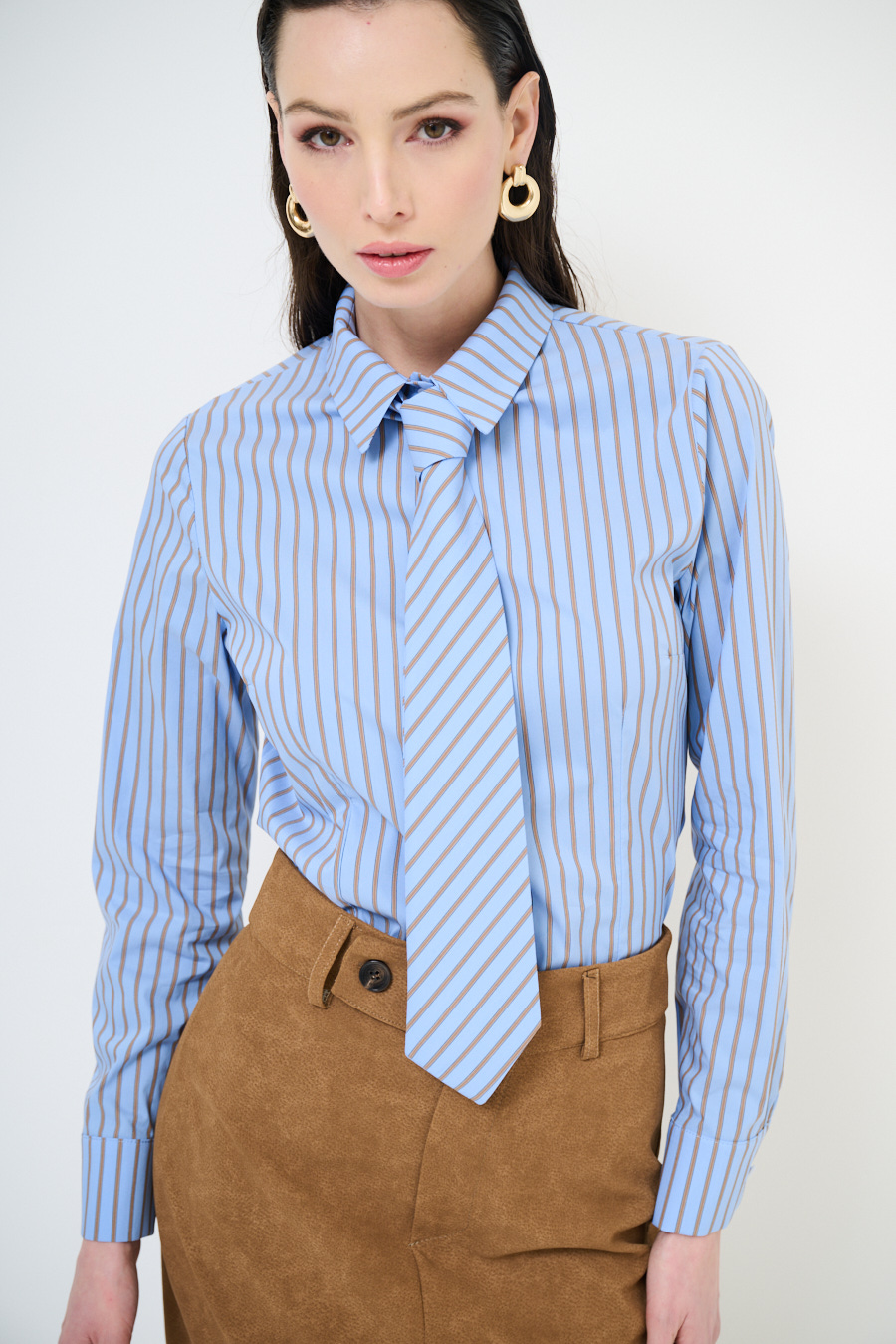 CAMICIA A RIGHE OVER CON PATTINE E STRASS IN POP. PANNA