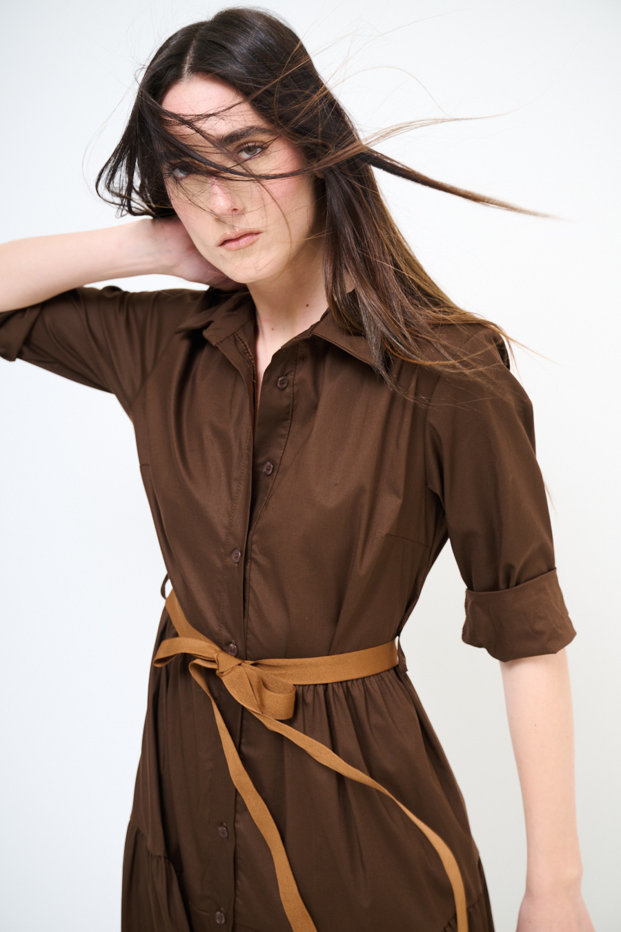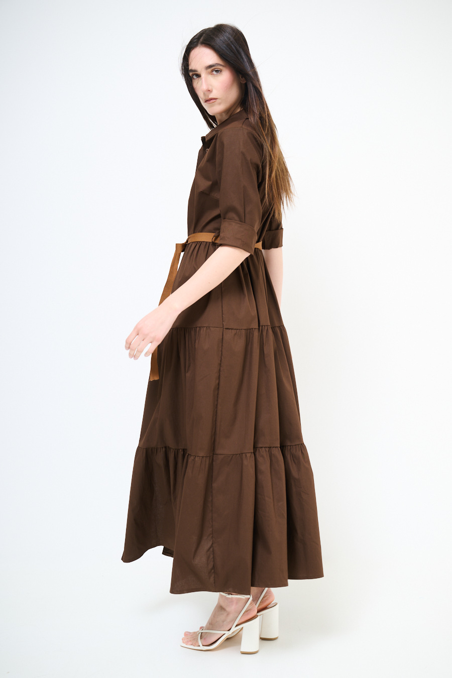 ABITO CHEMISIER LUNGO CON BALZE E MANICA A 3/4 MORO