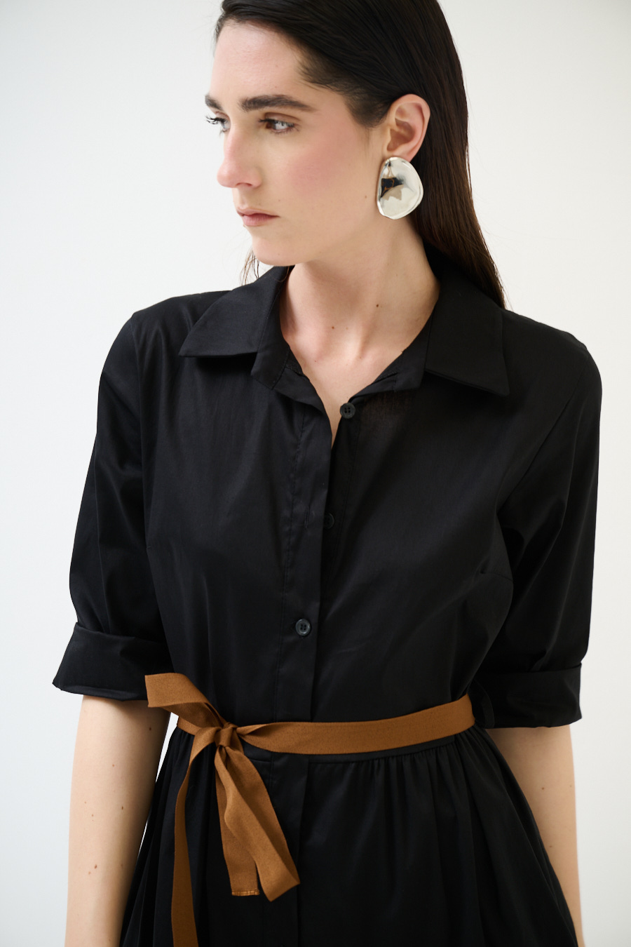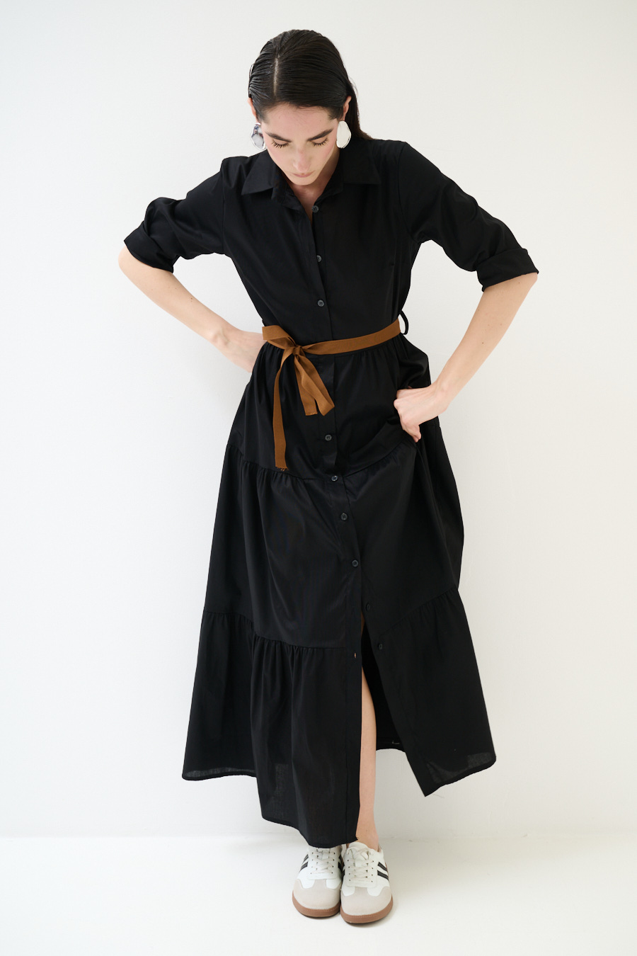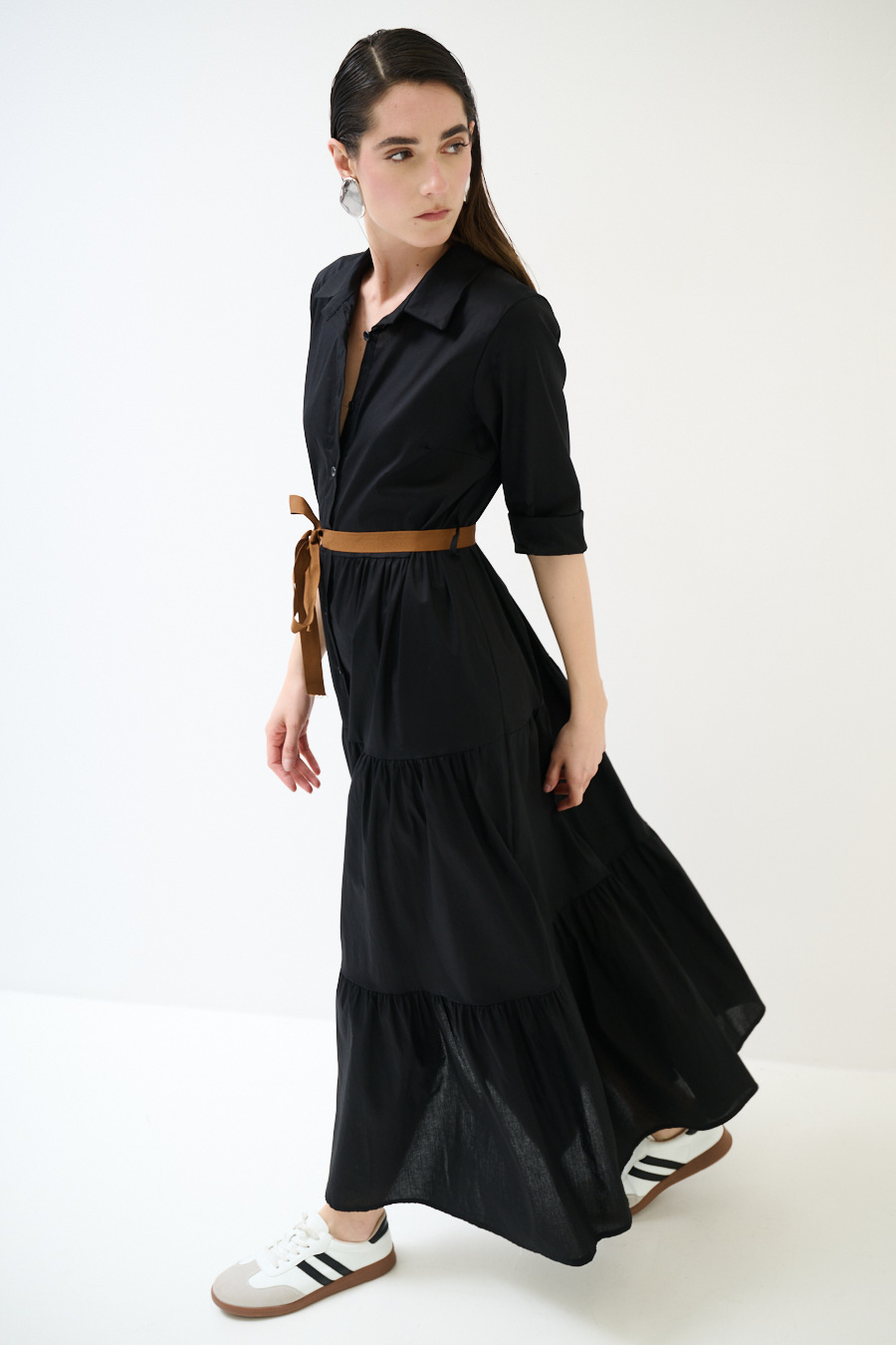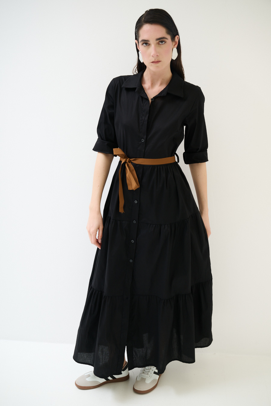 ABITO CHEMISIER LUNGO CON BALZE E MANICA A 3/4 NERO
