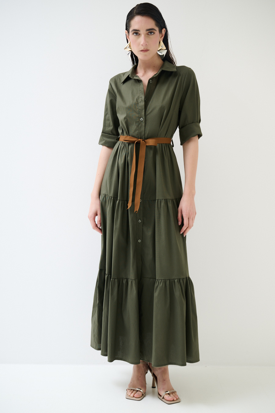 ABITO CHEMISIER LUNGO CON BALZE E MANICA A 3/4 VERDE MILITARE