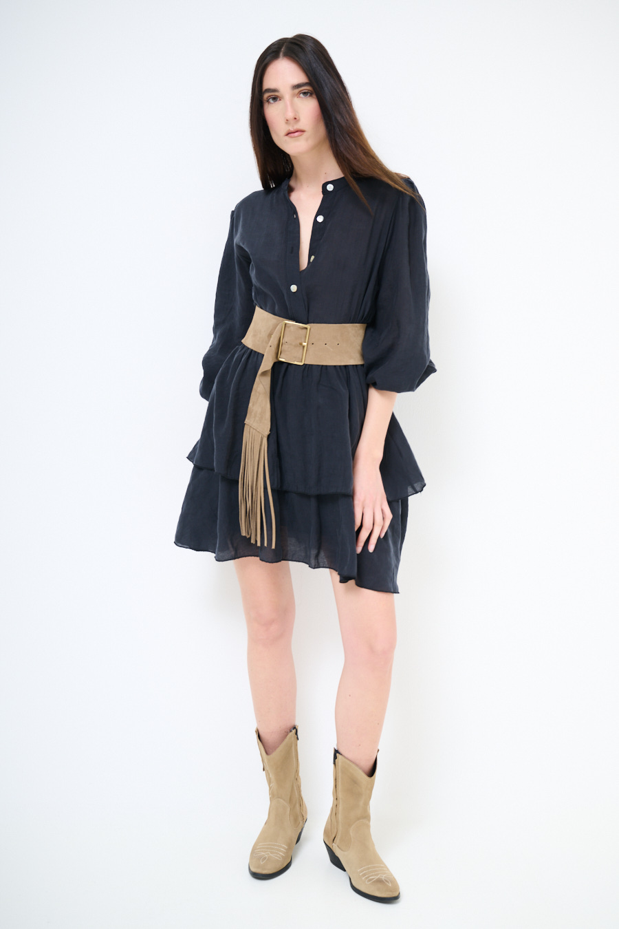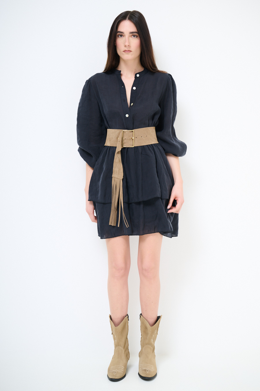 ABITO CORTO CON BALZA E CINTURA NERO