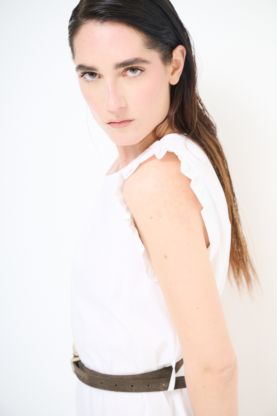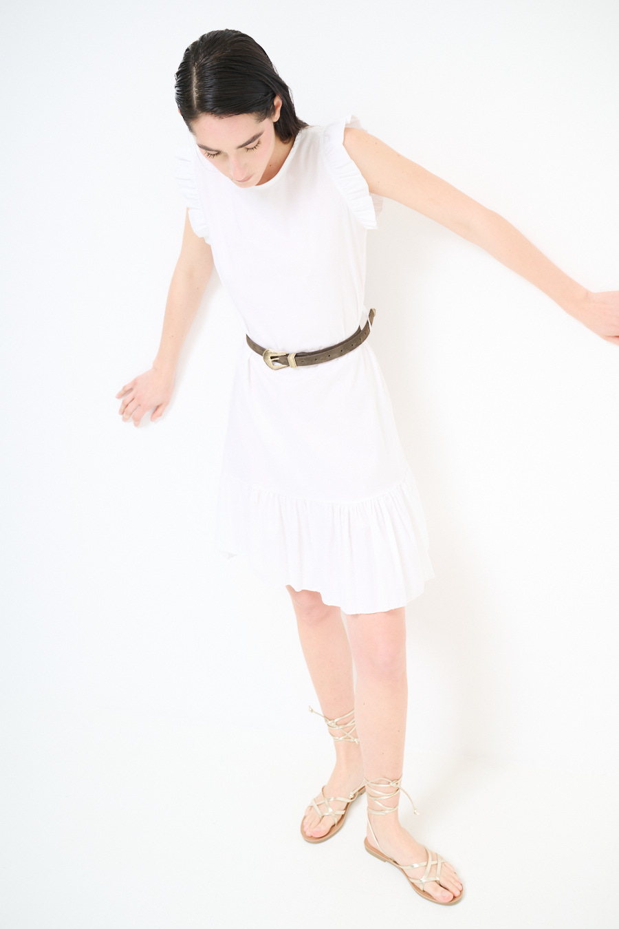 ABITO CORTO CON BALZA SUL FONDO BIANCO