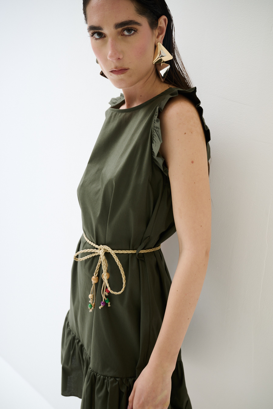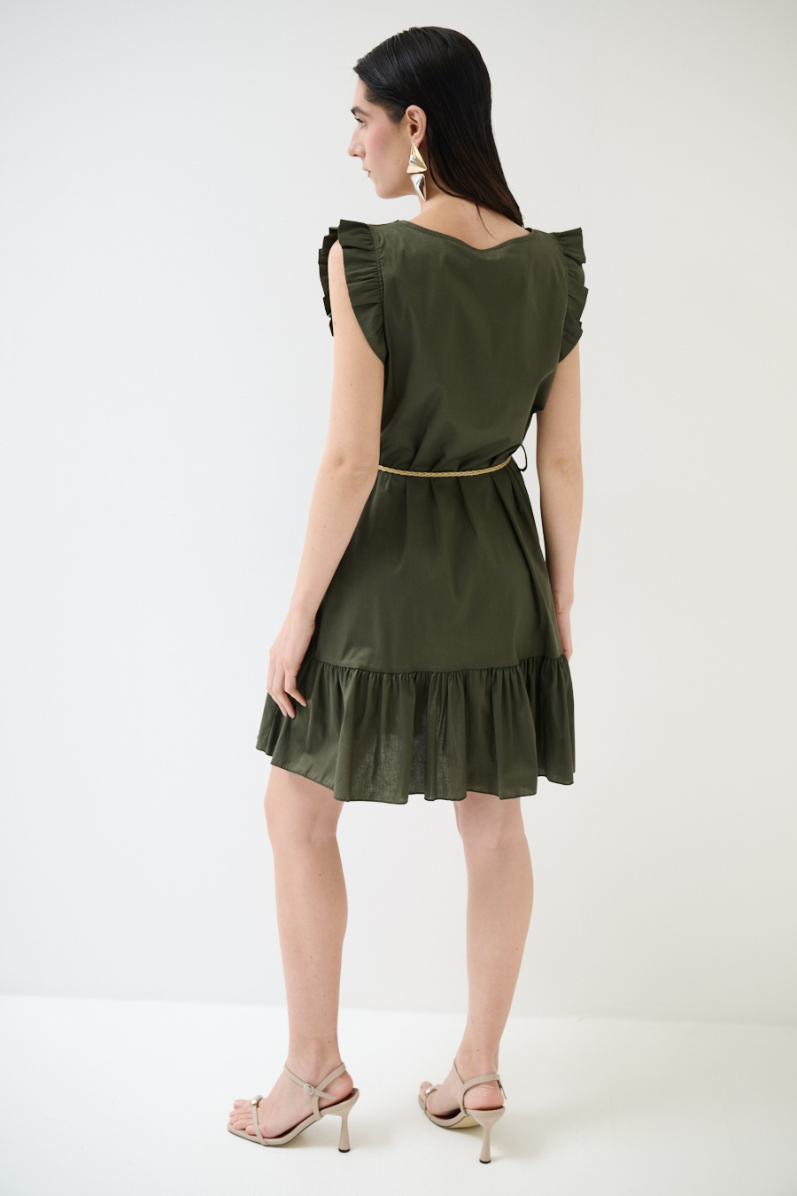 ABITO CORTO CON BALZA SUL FONDO VERDE MILITARE