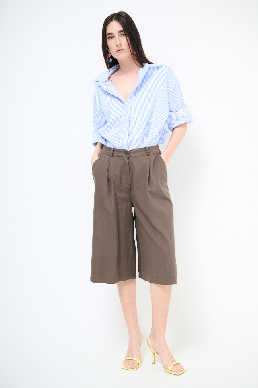 Bermuda oversize in cotone fiammato con pinces frontali ed elasticizzato in vita sul retro