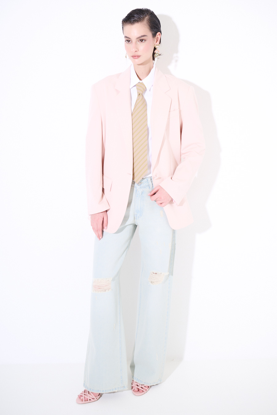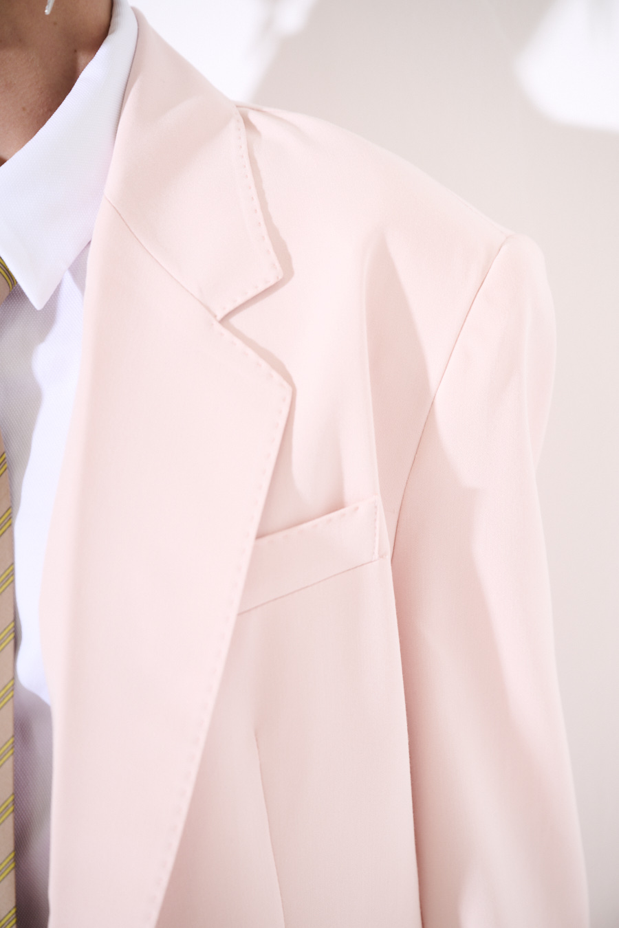 Single-button single-breasted blazer with fake flap pockets, internal lining, topstitching on lapels and edges