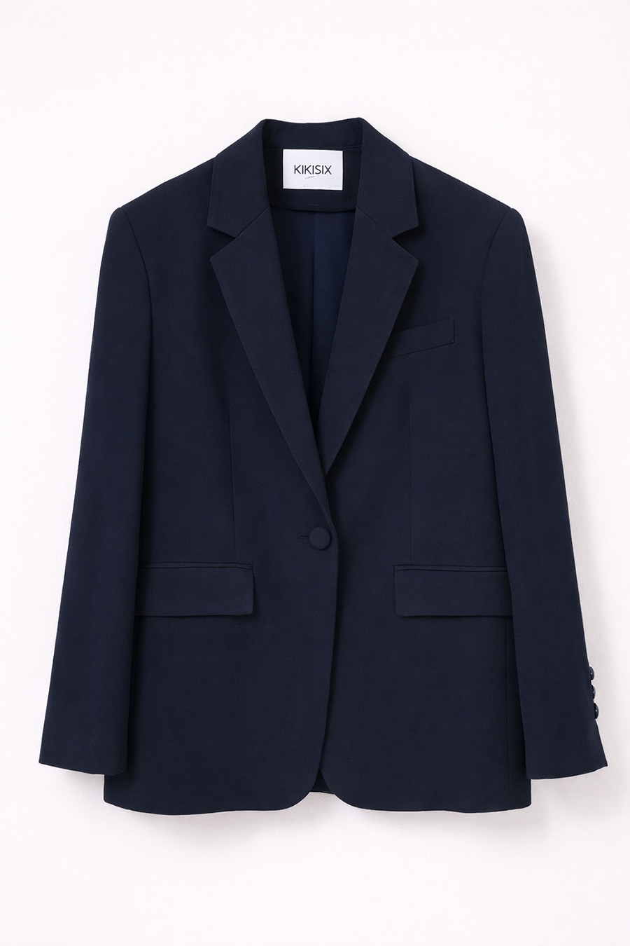 Single-button single-breasted blazer with fake flap pockets, internal lining, topstitching on lapels and edges