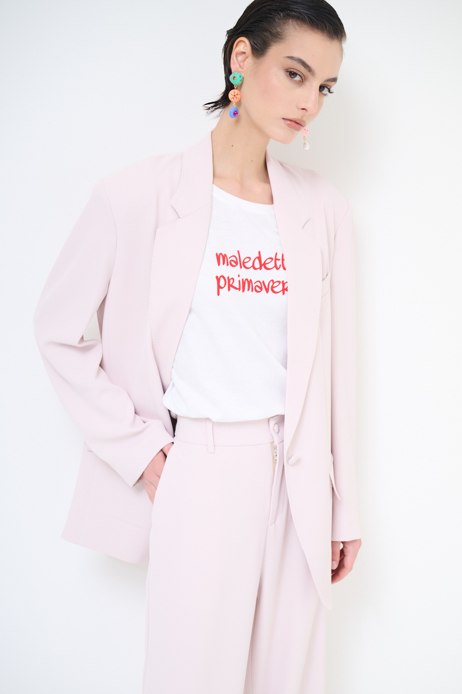 Oversized single-button jacket in lightweight cadì with wide neckline, lapel collar, padded shoulder and internal lining